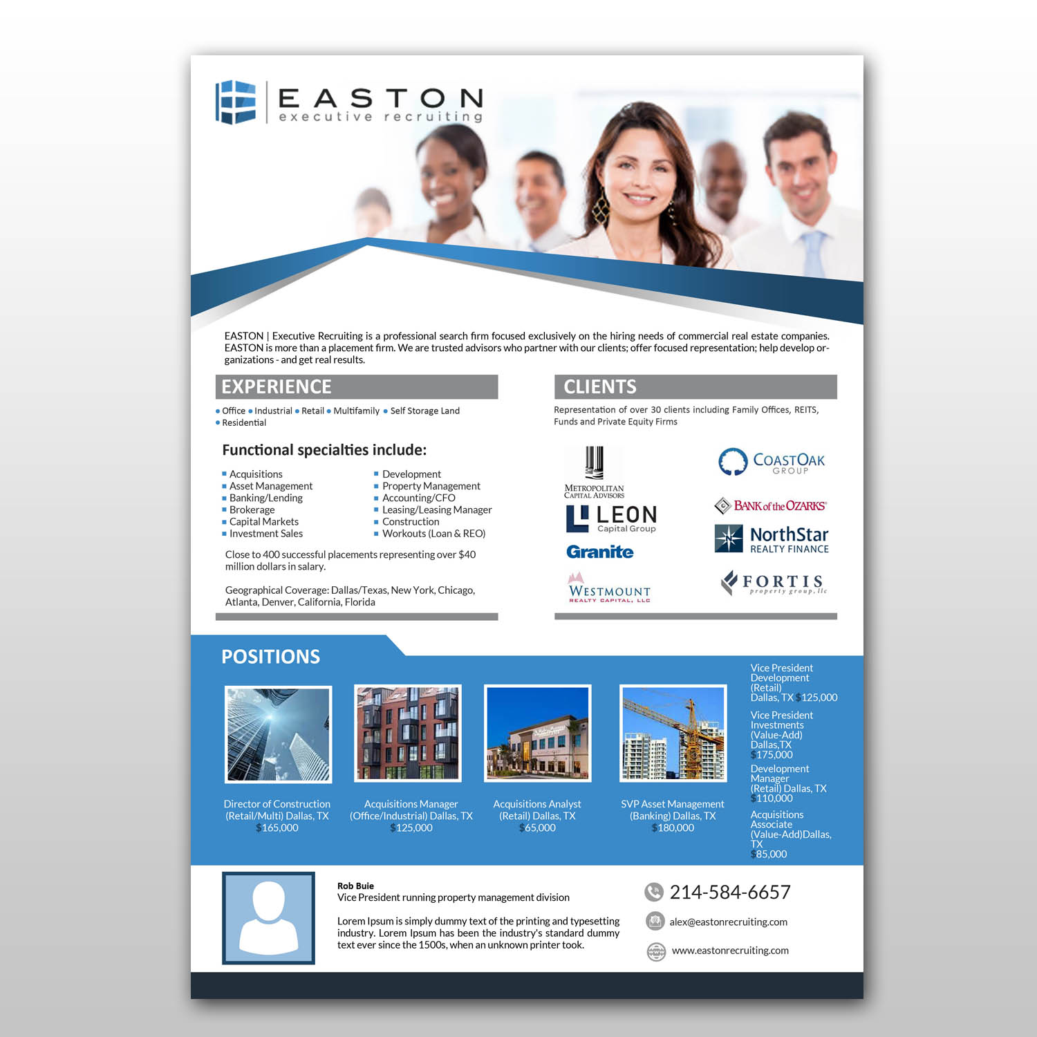 debdesign, un Indian designer, created this Vistoso, Recruitment flyer on 15th June, 2017 for un negocio en United States. The flyer was designed for the project 'New Property Management Division'.