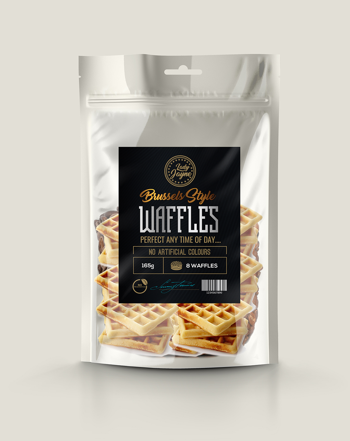 SAI DESIGNS, un Indian designer, created this Elegante, Food Production packaging on 21st July, 2018 for un negocio en Australia. The packaging was designed for the project 'Waffle packs (for hard discounters)'.