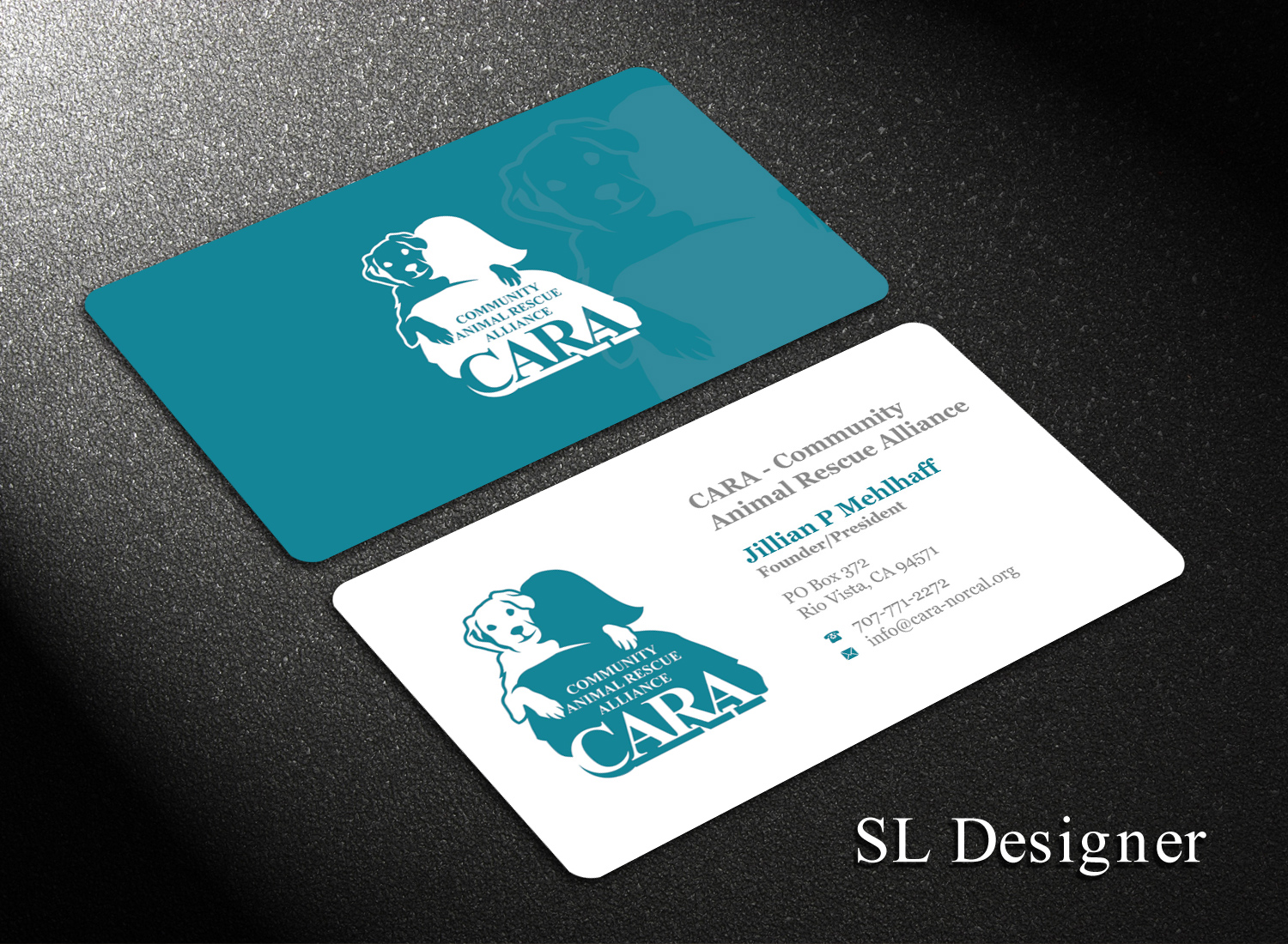 SL Designer, un Sri Lankan designer, created this Juguetón business card on 7th August, 2019 for Community Animal Rescue Alliance, un negocio en United States. The business card was designed for the project 'Business Card for Animal Rescue'.