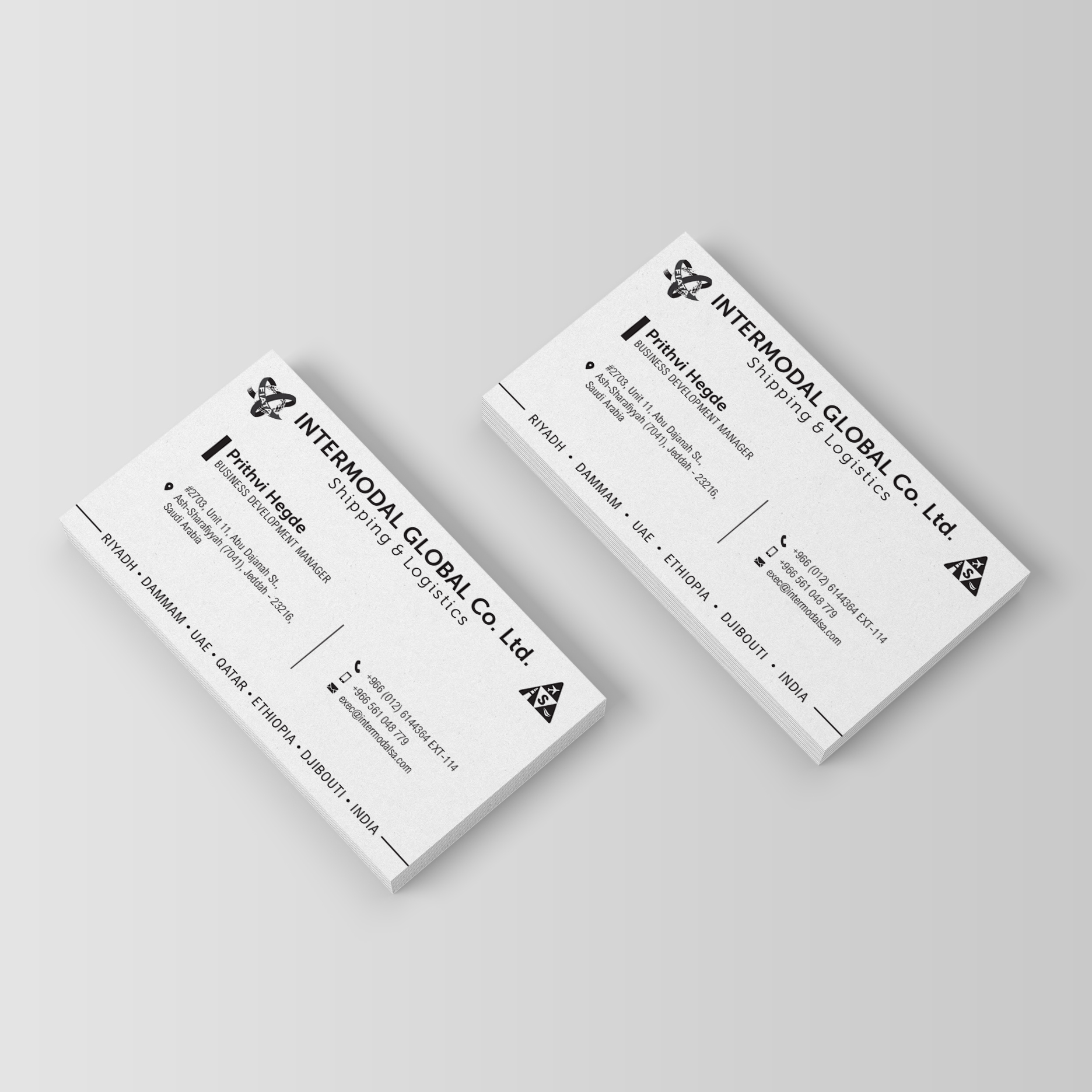 Ana White, un American designer, created this business card on 19th September, 2019 for un negocio en Saudi Arabia. The business card was designed for the project 'Logistics Biz Card | PH'.