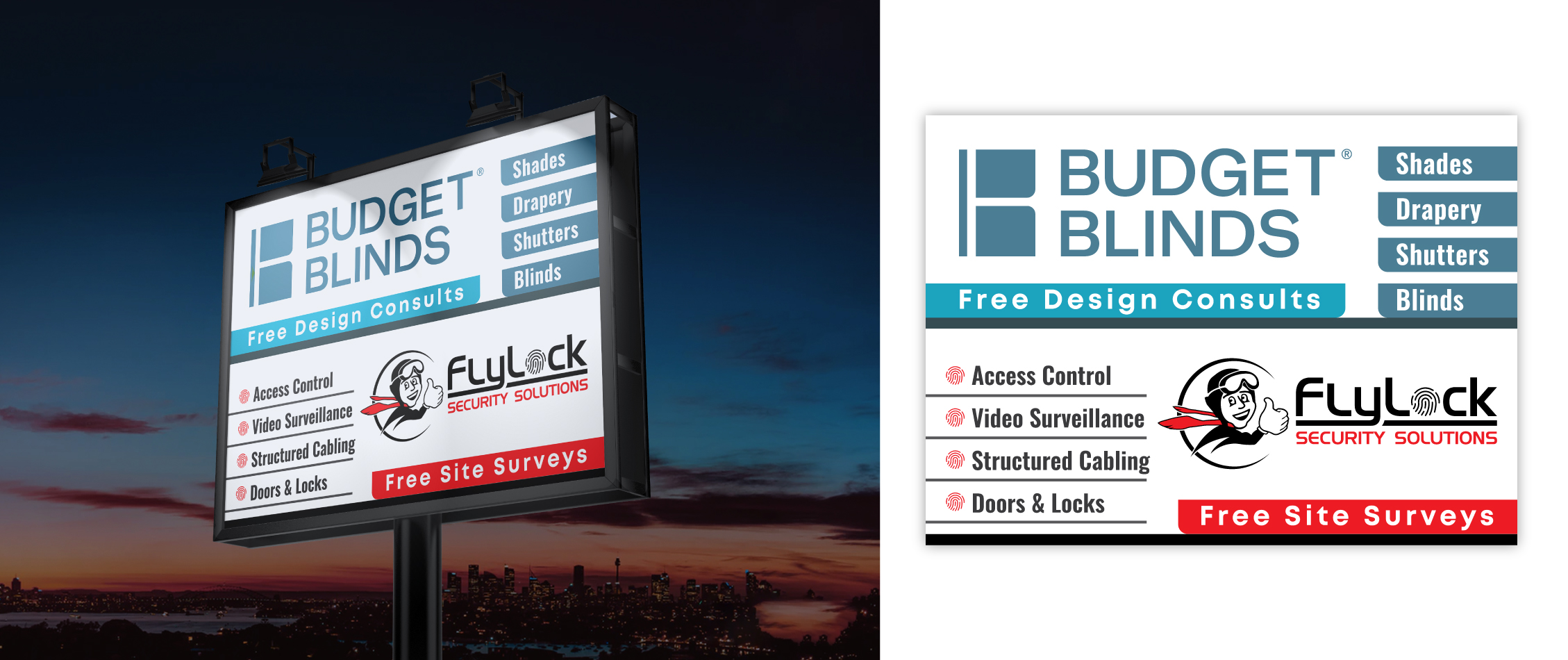 StromDesignHub, un Pakistani designer, created this billboard on 3rd October, 2025 for un negocio en United States. The billboard was designed for the project 'Billboard for 2 different businesses sharing the same showroom/office building'.