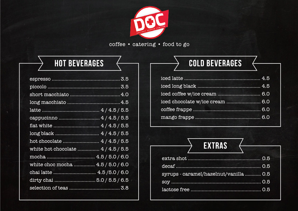 I have attached our coffee menu, we would like it to follow the same kind of layout.