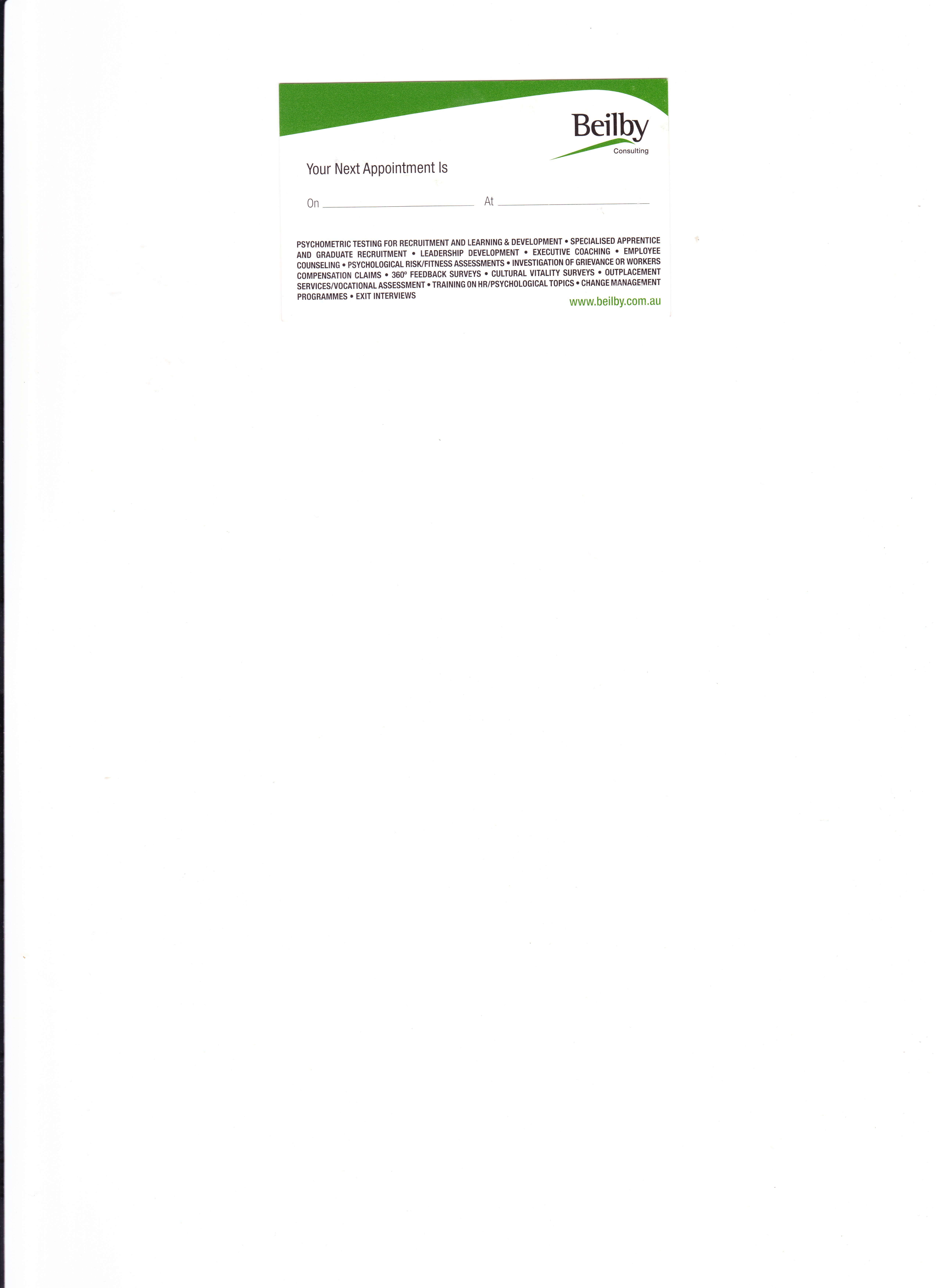 - Card One as outlined (General with my name, titel etc and back with appt details and services listing) and Card Two (Employee Assistance Programme - not to have my name etc on it)