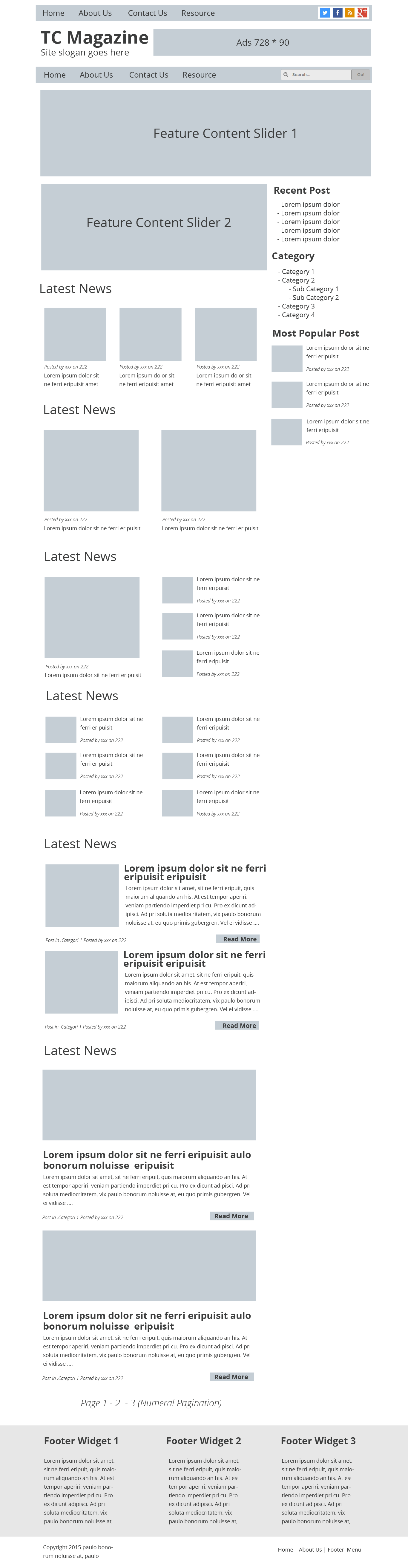 - + 2 Featured Content Slider as you see in wire-frame. They must be in different style from each other.