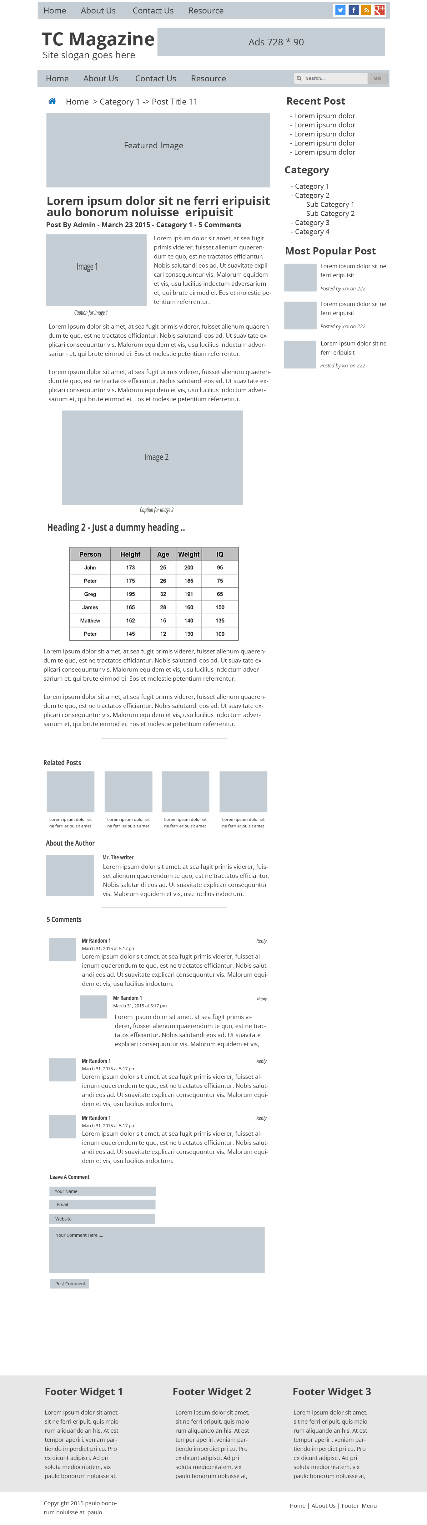 We need a design for our new Premuim wordpress Magazine theme design based on our basic wire-frame. The theme will be used by people who run online magazine, news website or just blog in general.