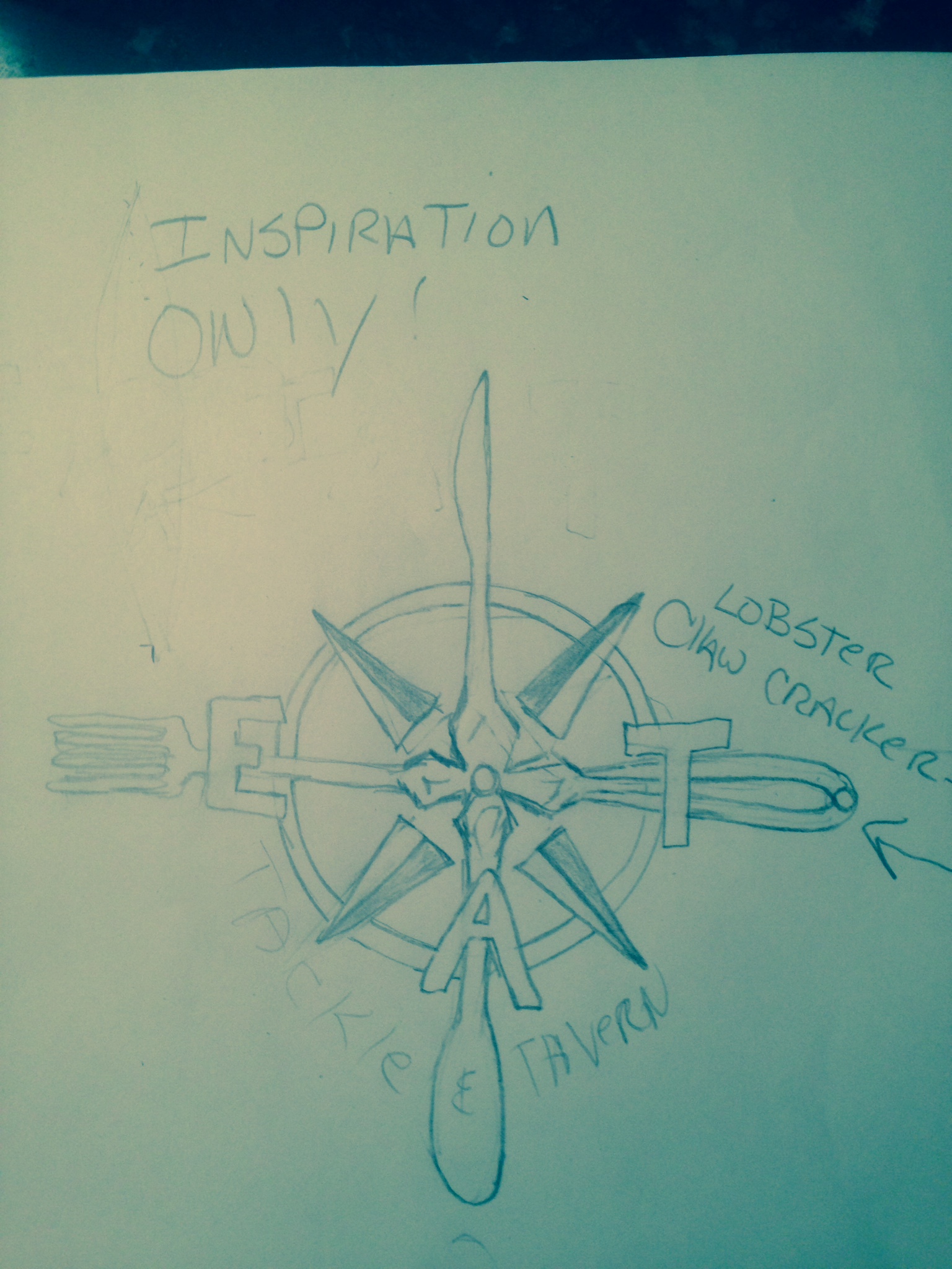 - Please incorporate the compass rose but instead of NSEW spell out EAT leaving the top point empty. Although the compass rose is round please make the overall design linear , spectator colors prodominantly navy, White, if you elect to use some red it should only be in accents.. see photos attached!!!