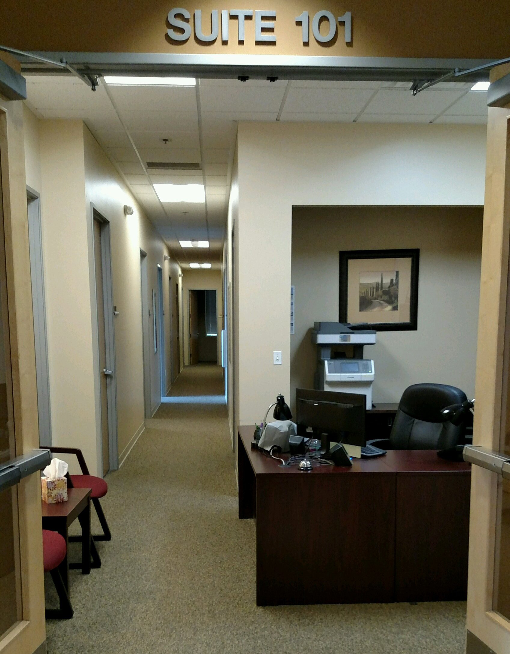 Needs to represent our town, Lacey, WA (USA) which is small (about 40,000 people) and friendly. Our clients are higher end and our building is new and modern.