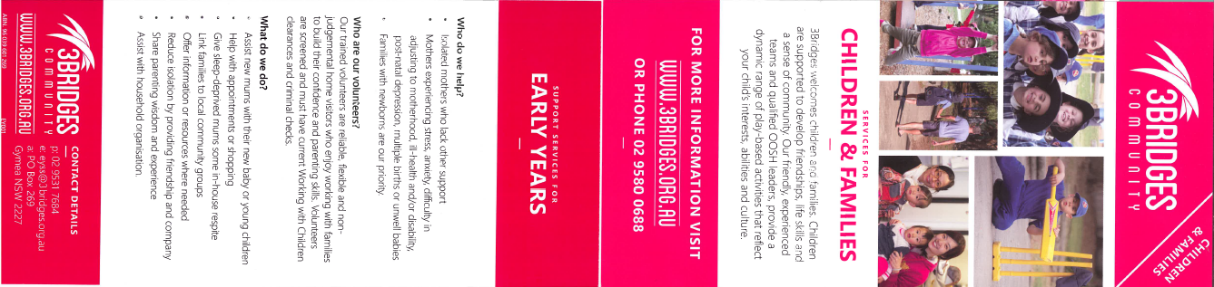 As for the content which we will add later we need room on both the front and back of the flier to add photos and text in later similar to the 3 Bridges pamphlet.