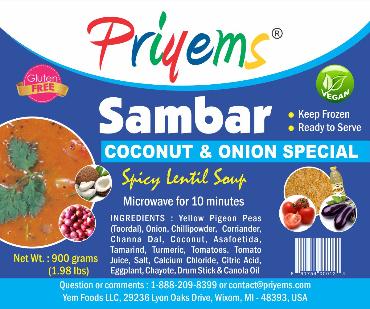 Sambar is the product and we need a label for that. The label size is 4"x3.33". Attached is the sample label containing all the necessary info.