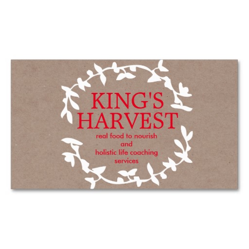 King's Harvest is a health business that sells organic skincare, food and holistic life coaching services. Our aim is finding the recipe to make our client's thrive. We would like red, white and earthy undertones in the design that communicates nature, elegance and community. (we have had a vision of hands in the design). The final design should communicate a professional holistic health business.