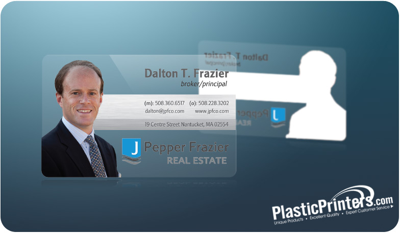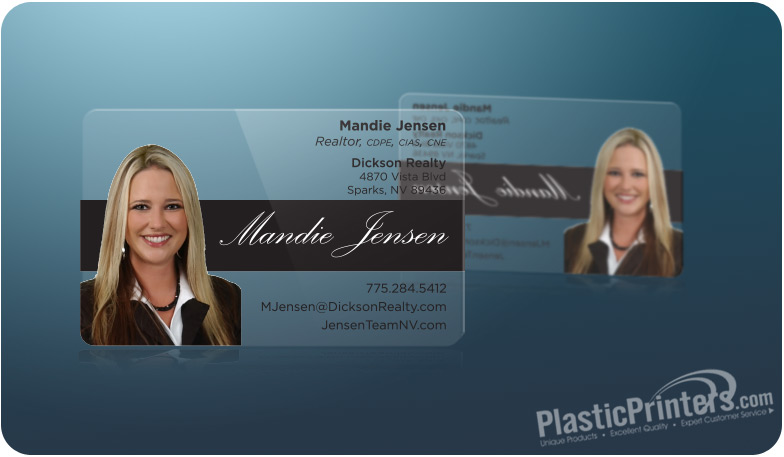 They must have my picture and have the Premier Realty Associates logo on them. I've attached both files. If you want to recreate the logo you can, as long as you don't deviate too far from the original. These are going to be on clear business cards. I've included examples of some clear cards that I like. Thank you and good luck!