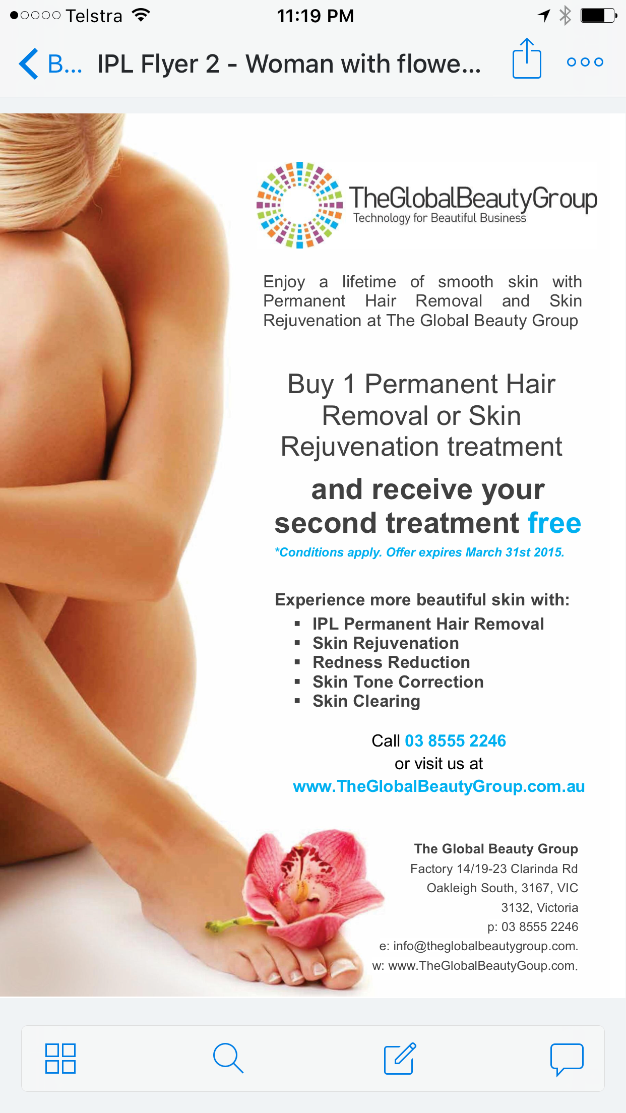 - I have got the rights to use these marketing images. Please change any phone number on the images to our number and any address as our address as listed here. Also please change global beauty to Palm Springs logo.