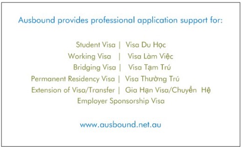 Ausbound Pty Ltd provides professional application support for various Australian Visas. Please refer to business card on file for details. This flyer should attract attention from overseas students currently studying in colleges and universities in Melbourne wishing to update, renew or extend their current visas. In Australia when an overseas student changes course from the original course whether because it is too hard (fail) or not suitable etc... they will need to apply for a new visa after being approved by another college for a new course. Ausbound offers a fast, reliable, professional service provided by 'MARA Registered Migration Agent' and migration lawyer. We would like to see attention grapping using striking VISA word, student graduate hat, etc....We will hand these out to students at colleges, display at counters at student accommodation apartment lobby etc...Color wise, we are not fuss but typical Australian colours are green, yellow, white and blue.