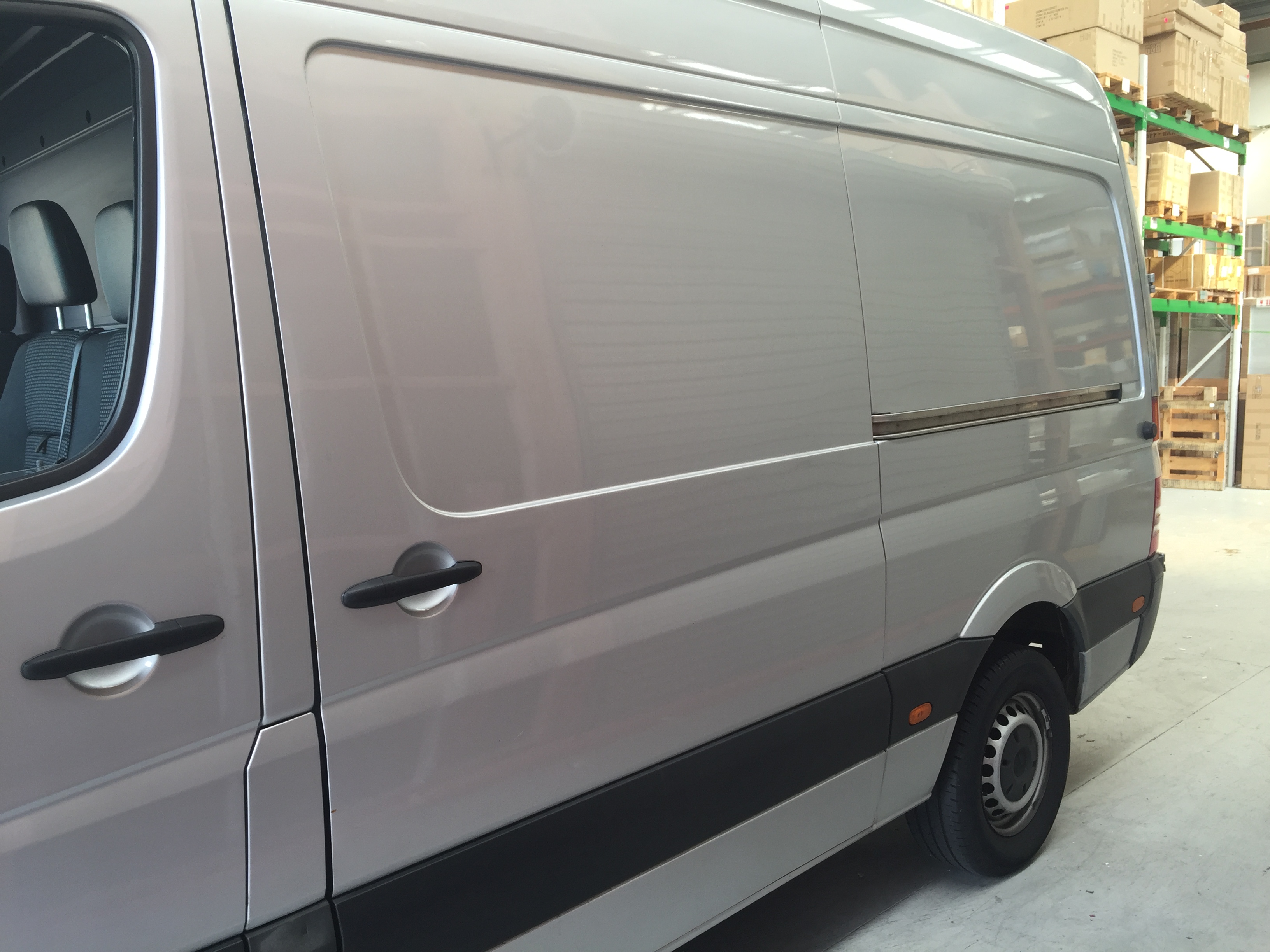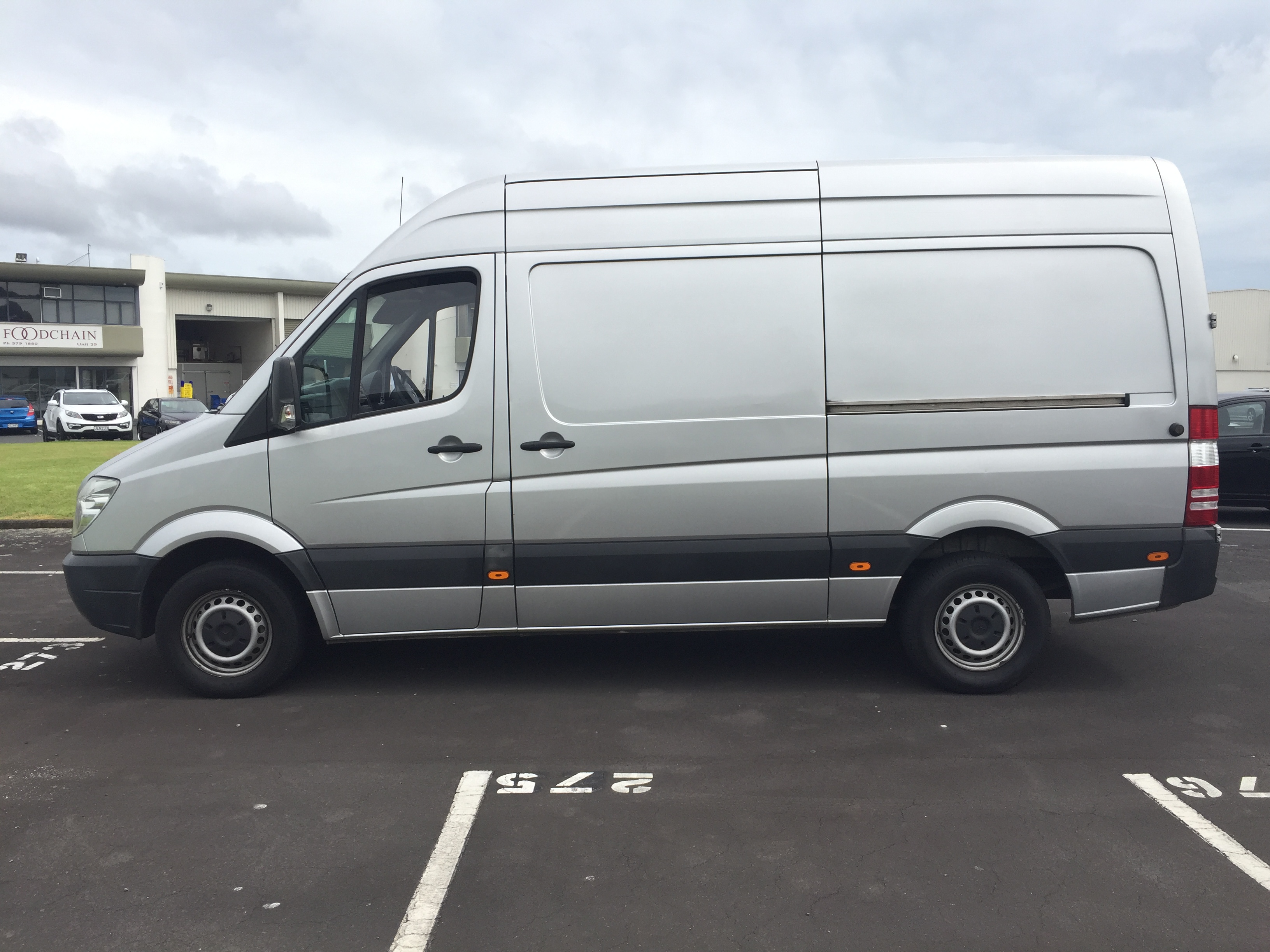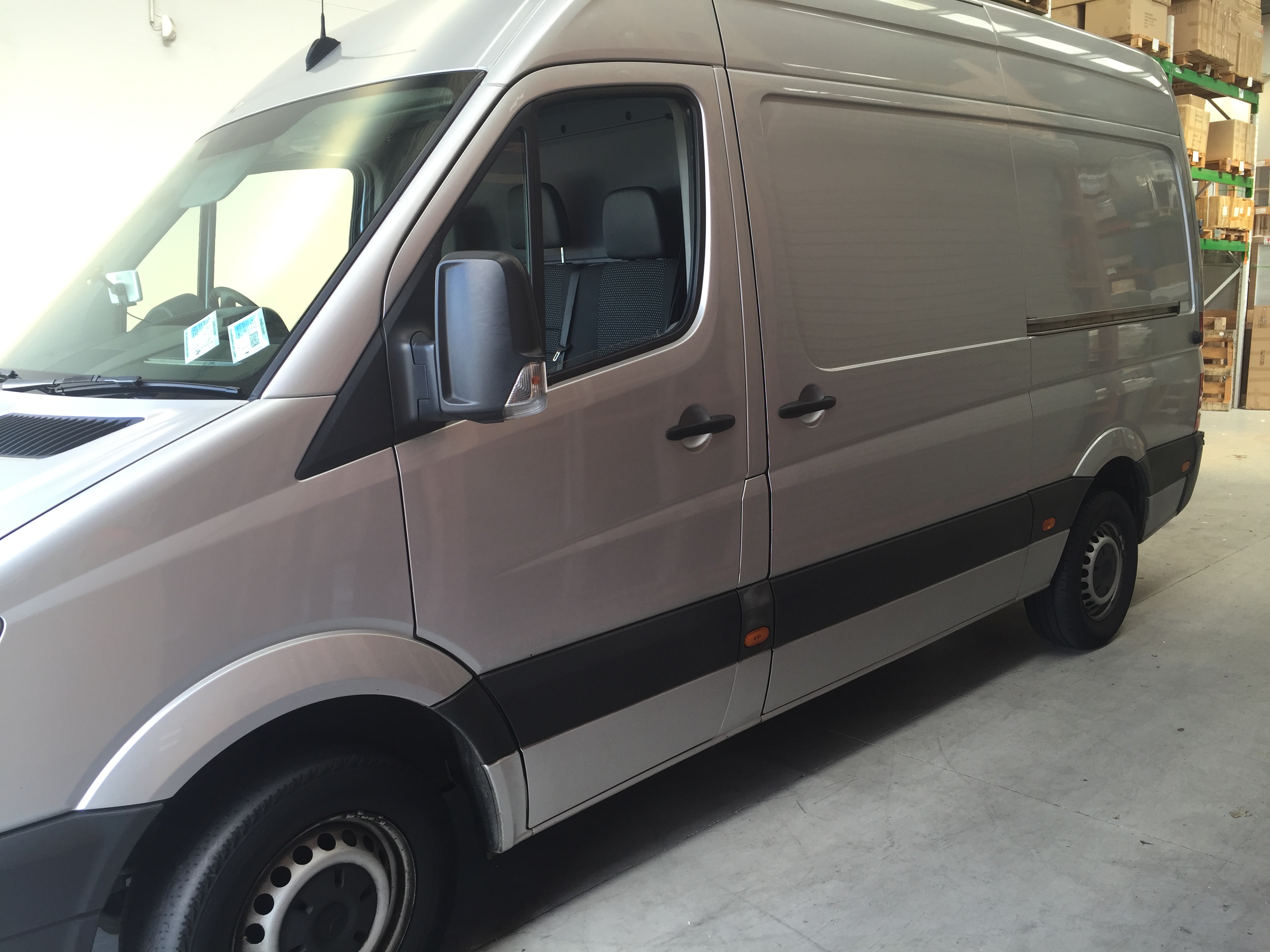 The van is a 2009 Merecedes Sprinter, super high roof and medium wheel base. It is painted silver, so consider silver the base colour.