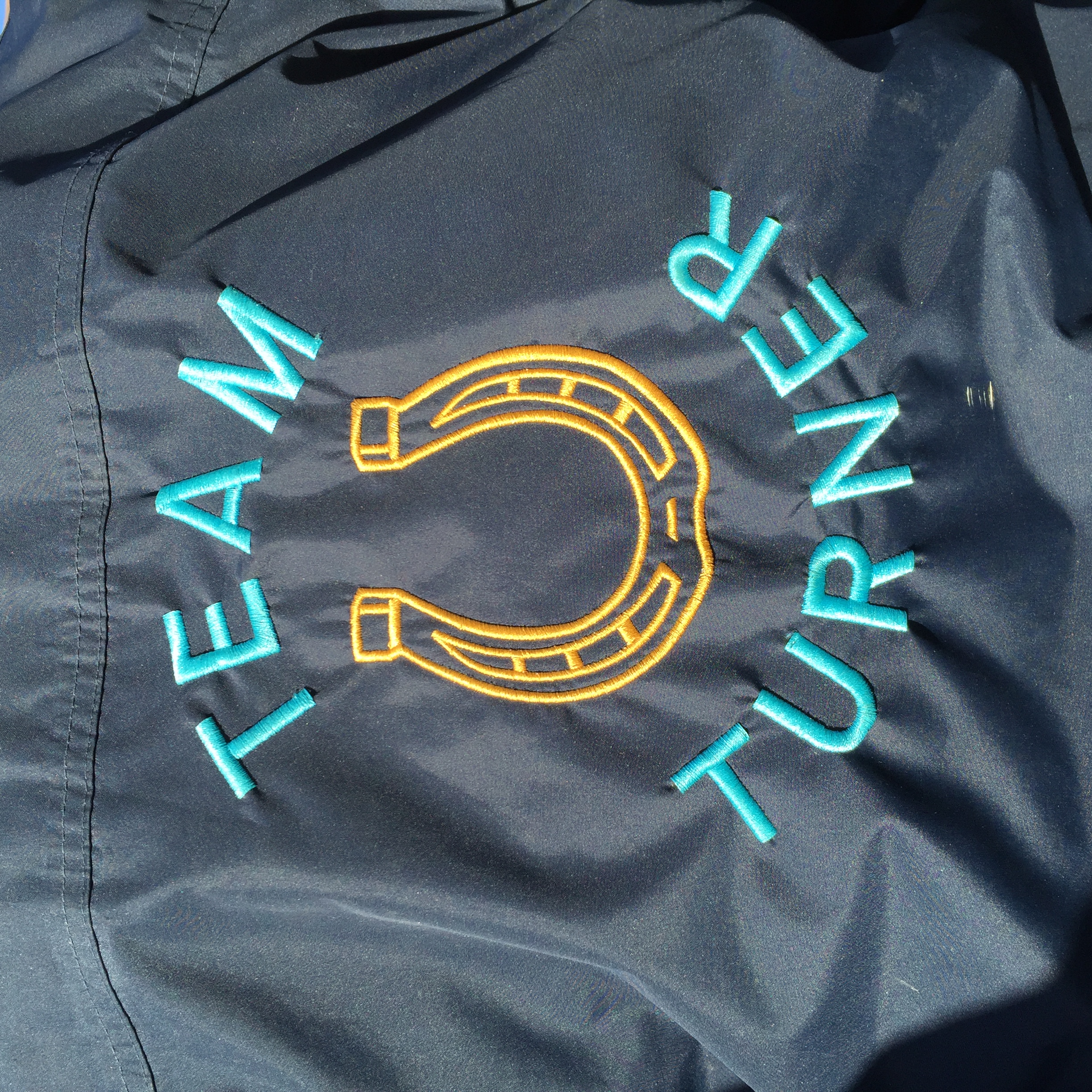 We did have a logo but can't locate the artwork . It was Team and the top in turquoise a gold coloured horse shoe underneath and then Turner under the horse shoe in turquoise . Something around this would be great