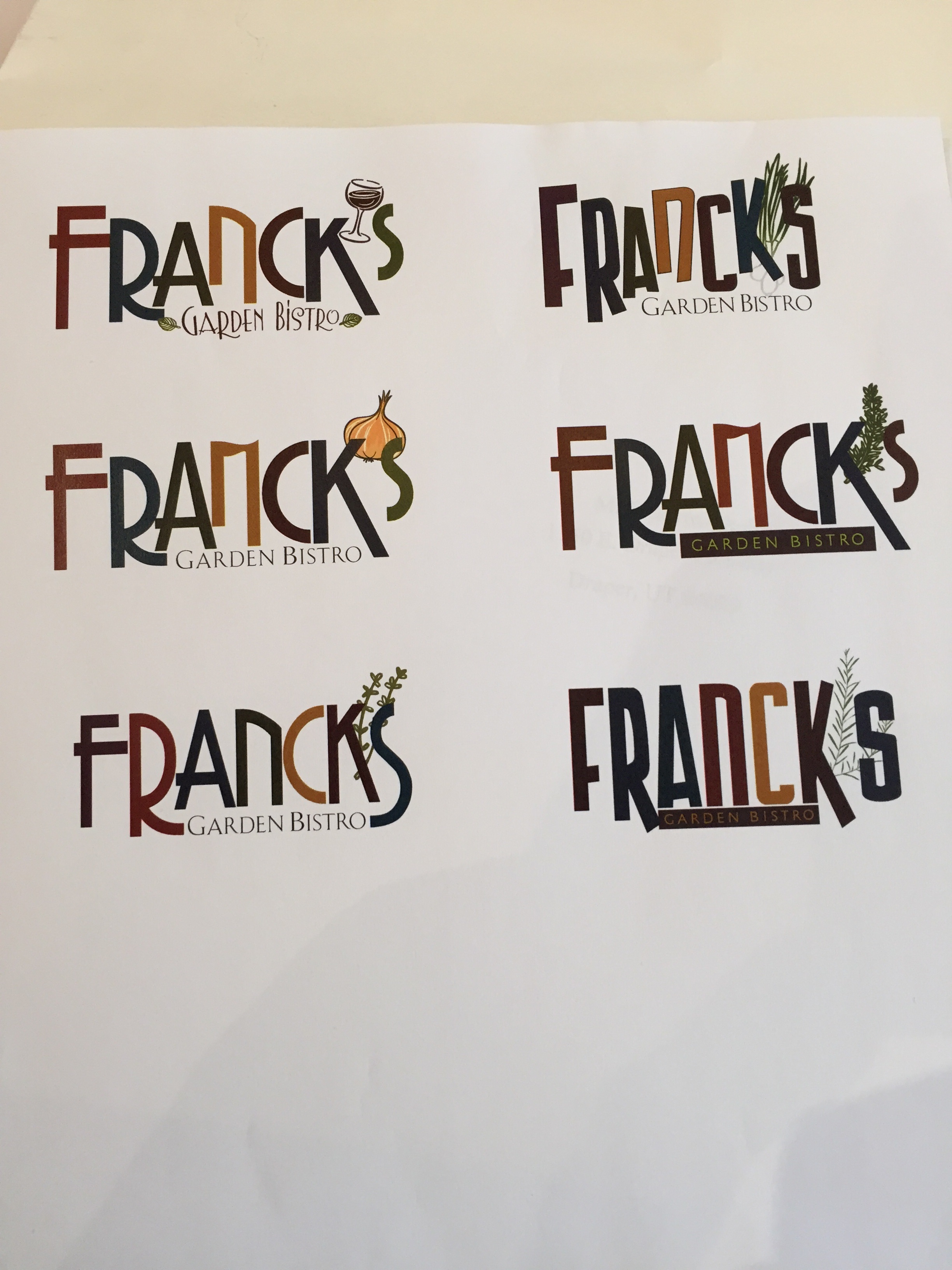 We are looking for a multiple colored logo that focuses on the Name of the restaurant. Francks is a high end contemporary boutique restaurant foodie.
