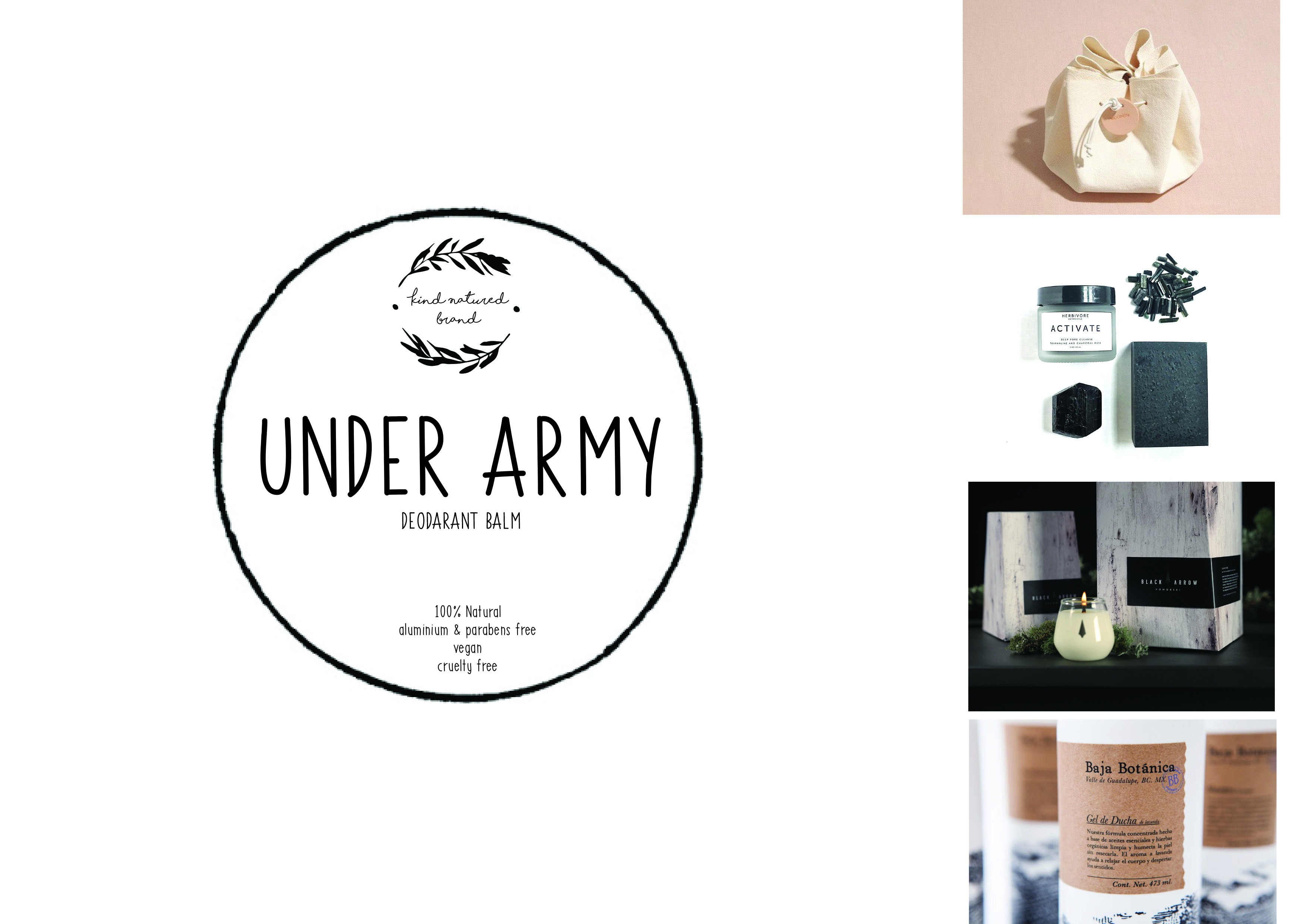 The brand is called "Kind Natured Brand", and the product is called UNDER ARMY Deodorant Balm.