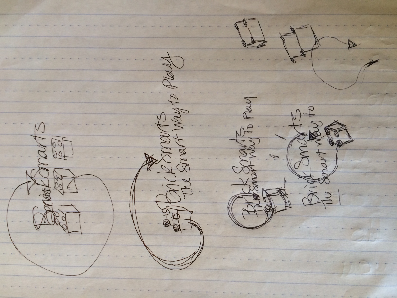 - I would like the logo to contain some form of lego brick image, and a modern version of the recycle sign. I have included some sketches. I would like the logo to highlight the "reuse" concept.