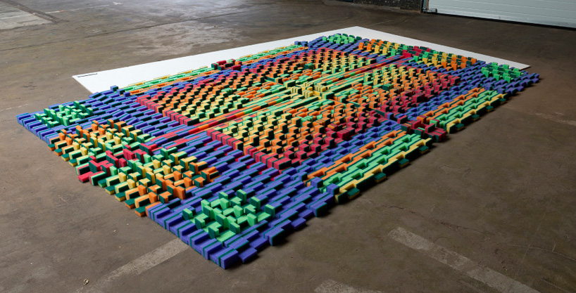 Designing out of a sponge block (each sponge block measures 2x1x1m) can be realized out of these processing methods, carving out, pouring, stacking different sponge layers or creating a strand. Block Sponge designs products out of sponge which can be organic or geometric, which can have a sharp defined finishing or can have an organic undefined shape.