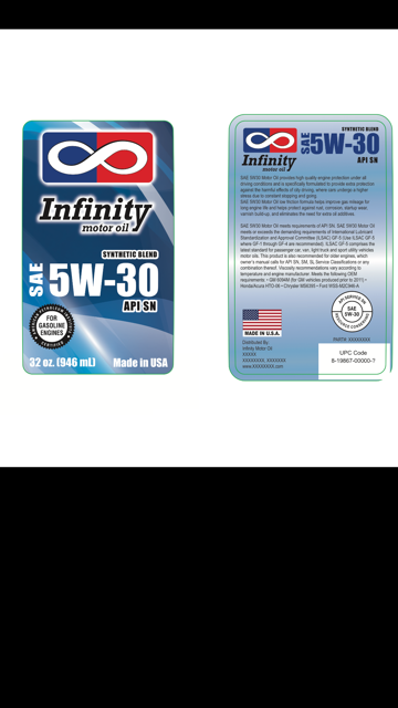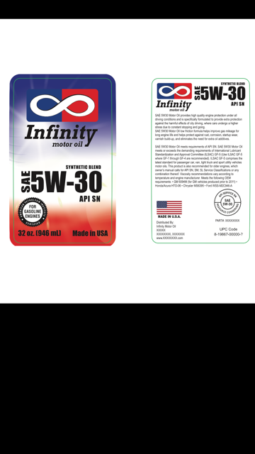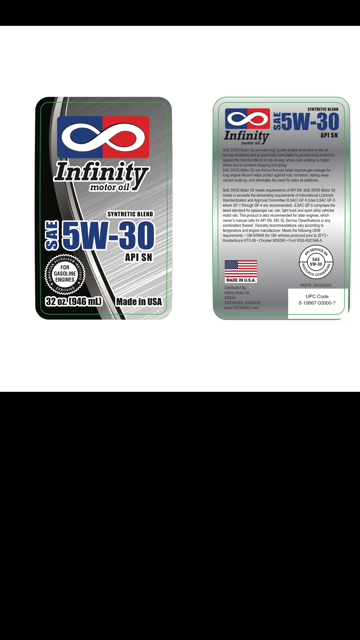We are looking for a logo and label that we can put on our motor oil bottle 1 liter and 5 liter. The name of our motor oil is Infinity. We want to design our flagship logo for INFINITY MOTOR OILS and as well as the label that will go on the bottle. We have some drafts that we have come up with attached and would like to see more options. The concept of a timeless motor oil and the endless loop of lubricating oils incorporated in the design. We will have full synthetic motor oil, a synthetic blend motor, ATF III transmission fluid, DEX-VI transmission fluid. hydraulic oils etc. Examples will be attached