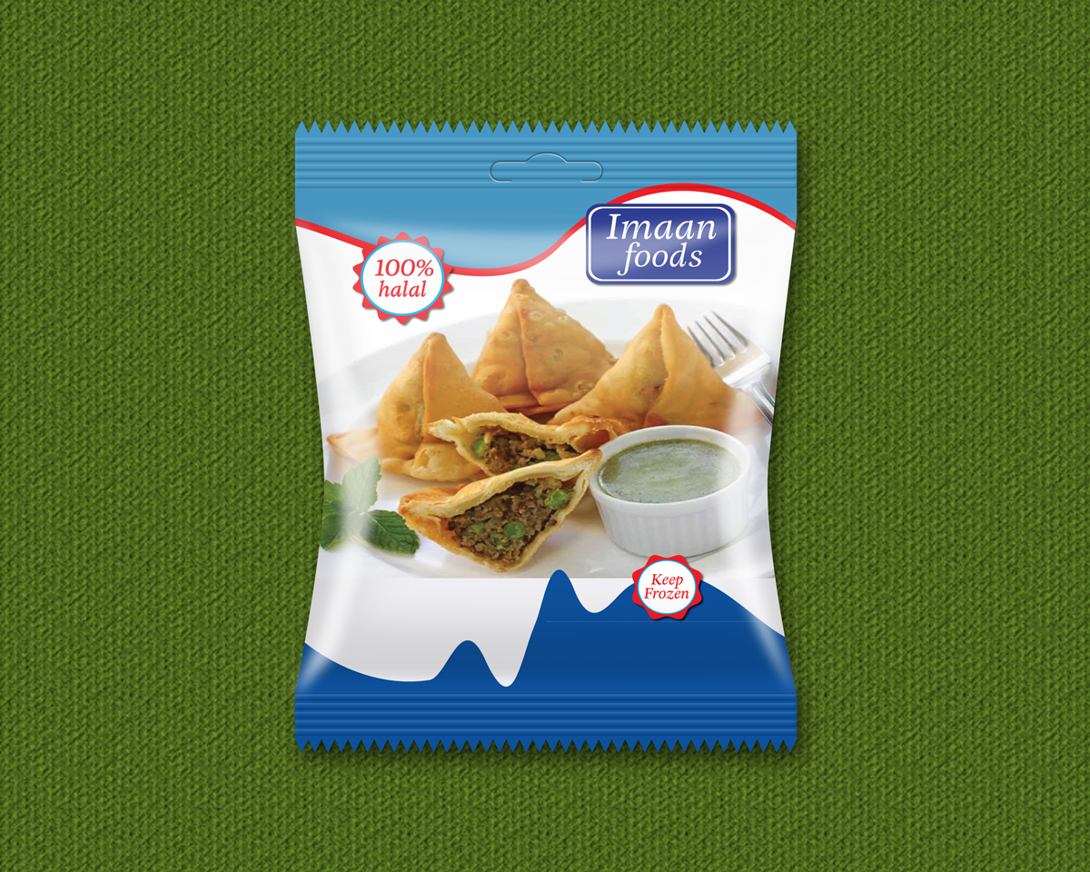 The Packaging similar to the one attached which I believe is by your designer. In the front of the packaging there must be a clear space where people can see the product. Packaging in two colors one for "Traditional Samosas" and other for Original Samosas" (do not Mention Halal). Information such as Frozen and so on in the front. Cooking Instructions, Nutrition Facts, ingredients, our Contact details and so on at the back.