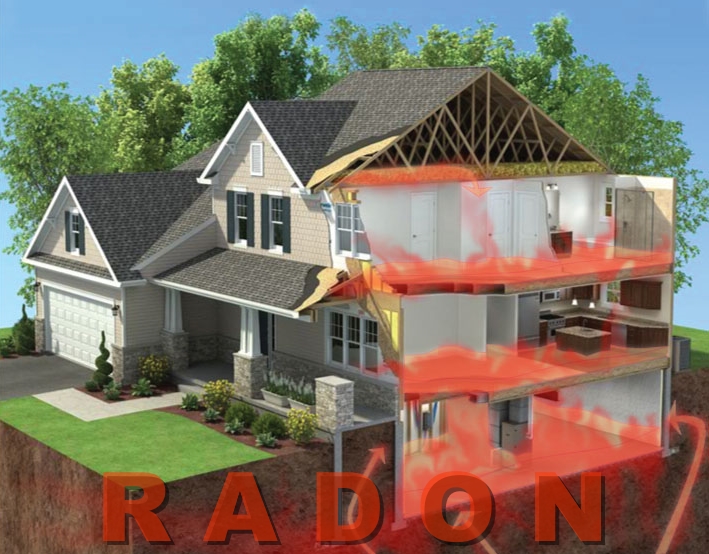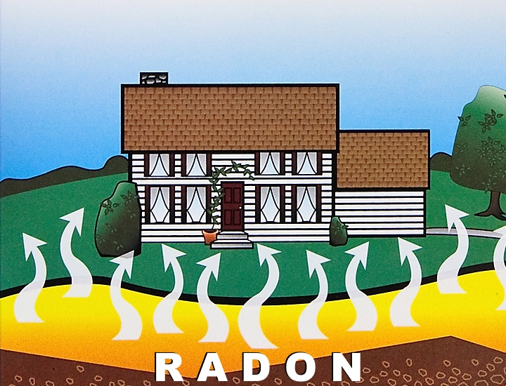 NOTE: For the text of the word "RADON" that should be displayed somewhere in the image, please try to use a "vapor" or "smoke" effect with the font to represent a gas substance. I have attached an example font which is from Photoshop known as "Toxic Vapor Text Effect." You can also see an example in this link: