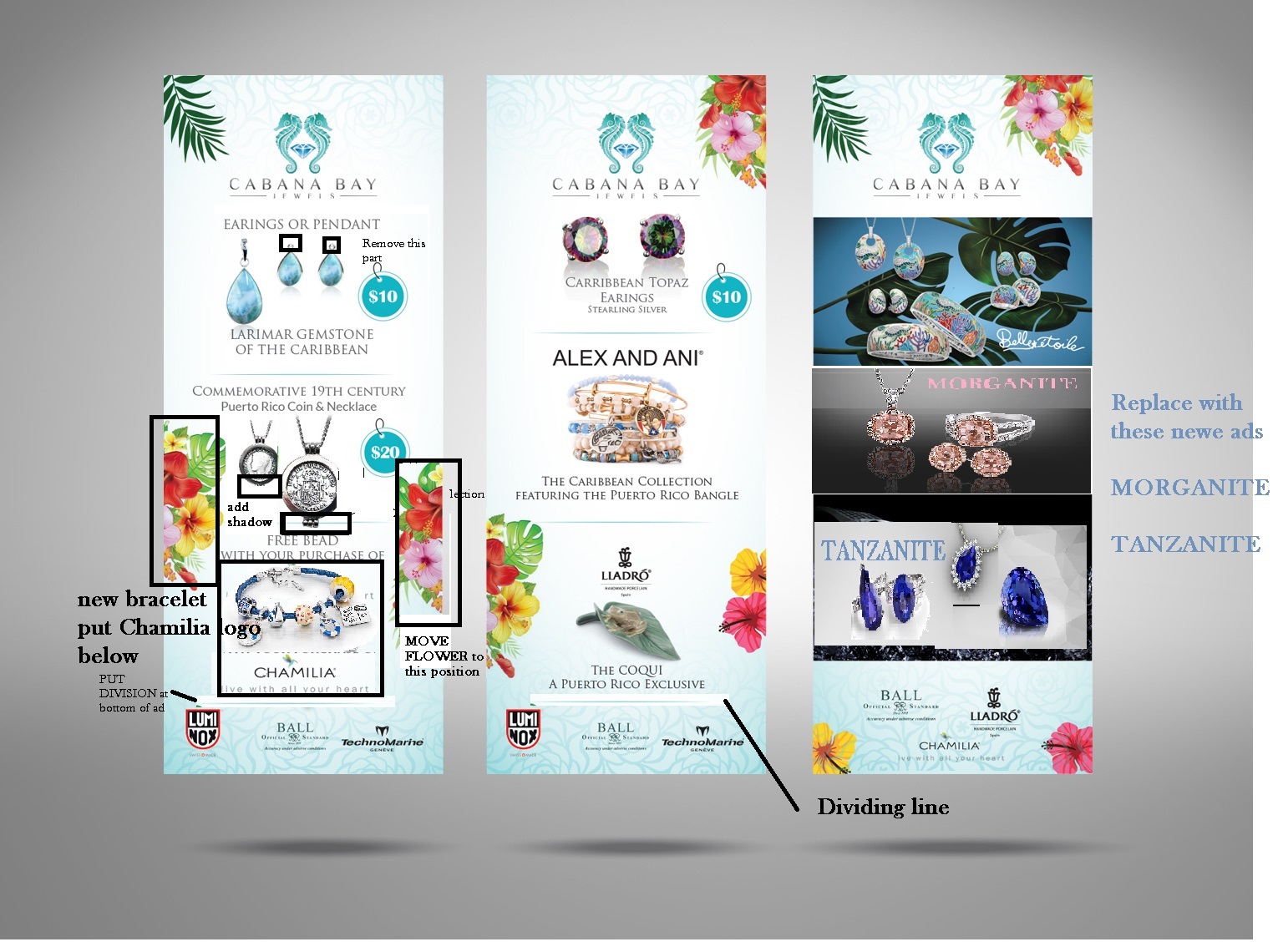 We have multiple brands that have there own ads and will be sending them to us in the next few days to have incorporated. I have uploaded most the logos and some of the art work to be incorporated in the ad. As well as an example of the layout, (Cabana Bay Layout) for reference we only need to see the overall look to make a decision then we can work on the final revision with the actual ad and logo placement. We are thinking of keeping it a white background and incorporating some decorative accents around or in between ads. But at this moment we do not have any particular design requests, other than look good and upscale.