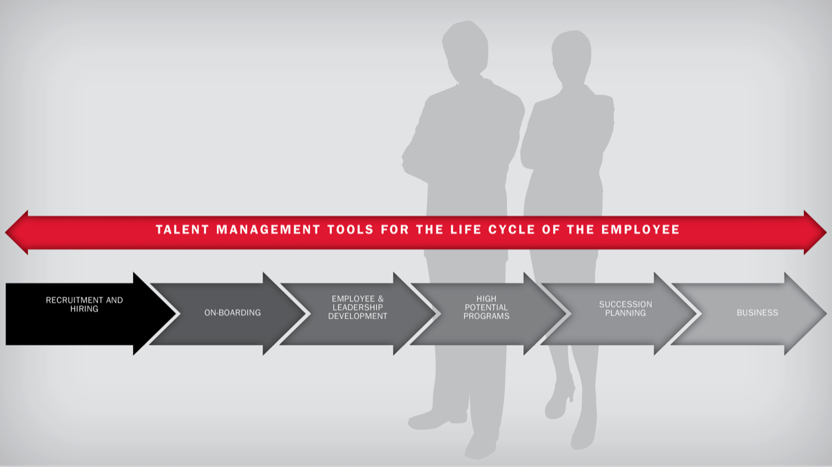 Need a new, fresh design approach to this graphic. Need it to be sized to fit into a widescreen PPT: 13.33in wide x 7.5in high. Looking for something clean and modern that will still get the message across that we offer products for every stage of the employment lifecycle.