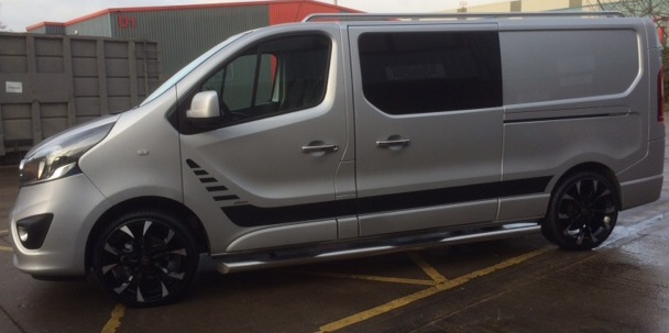 Please design a vehicle graphic for Vauxhall vivaro lwb van in silver