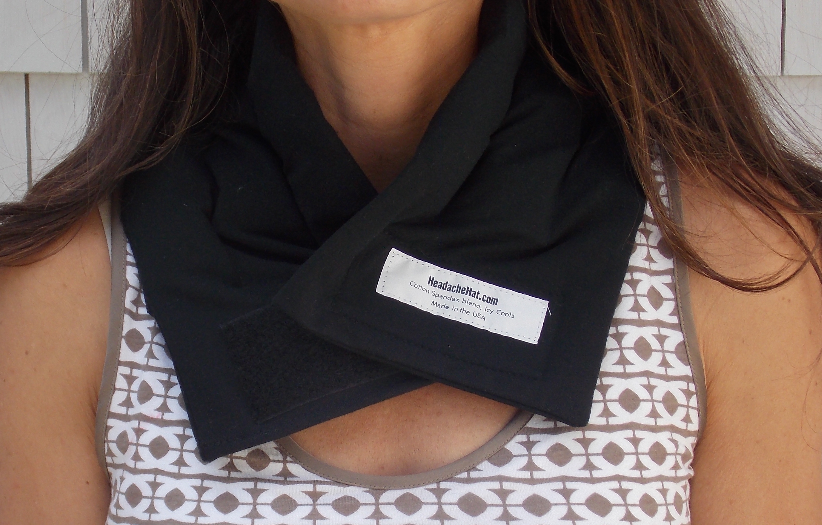 Create a box for retail, using the logo, upc code, pictures, and specific text provided (FDA approved). Looking for a modern look - neutral colors (blue tones ok too). Attract attention around this unique wearable ice pack for migraine and headache sufferers. Box dimensions should be 8.5 H x 6.5 W x 2.5 D Note I do not like the design on the attached document but it has all the text needed