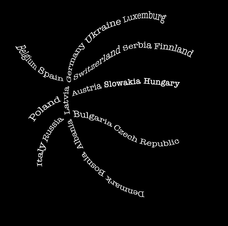 I need a new idea for a layout for a basketball tournament shirt with all 22 participating countries on it.