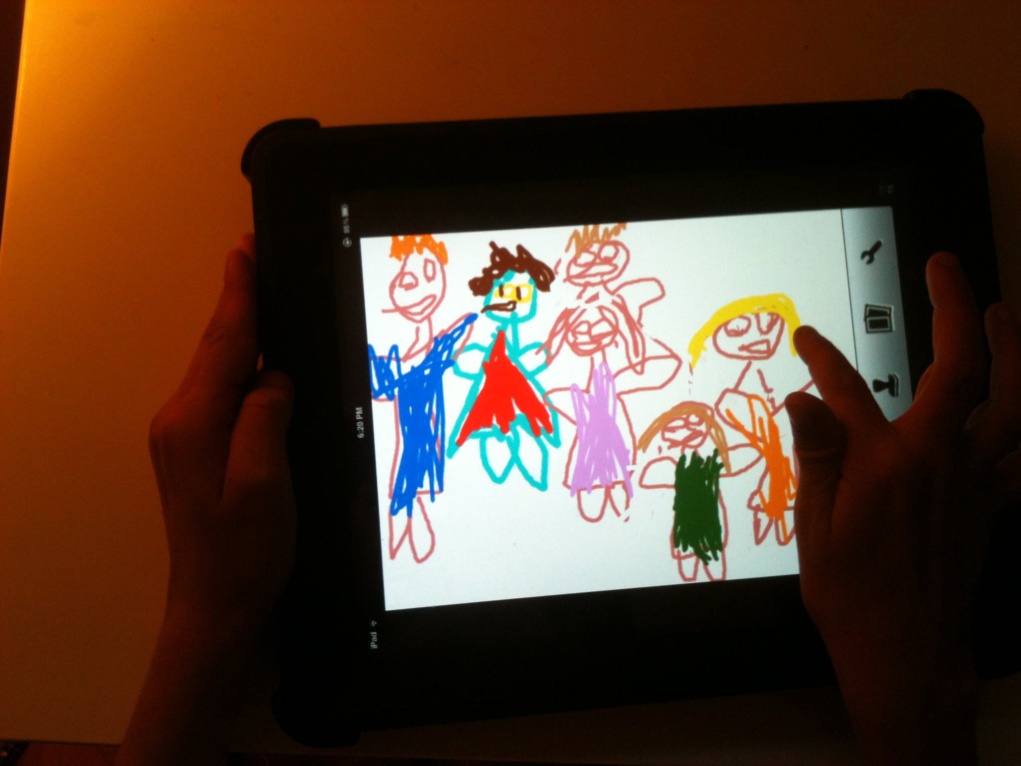 I would like it to be very bright and colorful, and would like it to fill the page. This will be photo shopped into an iPad so if you want to do it in an iPad, then that's great. in fact, if you want to include the little hands painting on the iPad, that would also be great, but not necessary. I've included some examples.