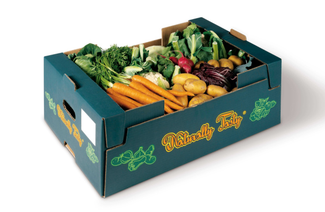 For the vegetables. The design will need to go on a box like the one in the attached image. The phrase "Organically Grown" should be on the package. I would like the background color of the package to be black. I think I would also like to see some stylized vegetables (tomatoes in particular) on the package.