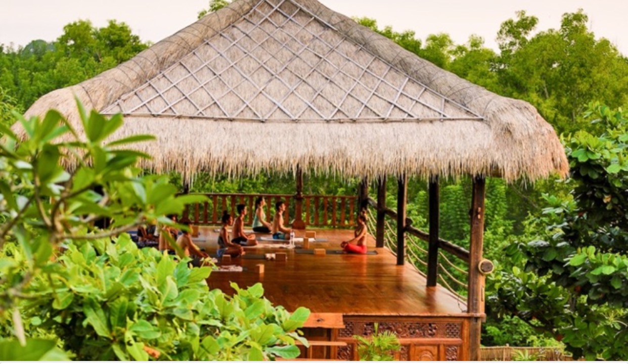 - Yoga, Children playing, Tourists relaxing in a quiet and beautiful environment tropical juice Bar.