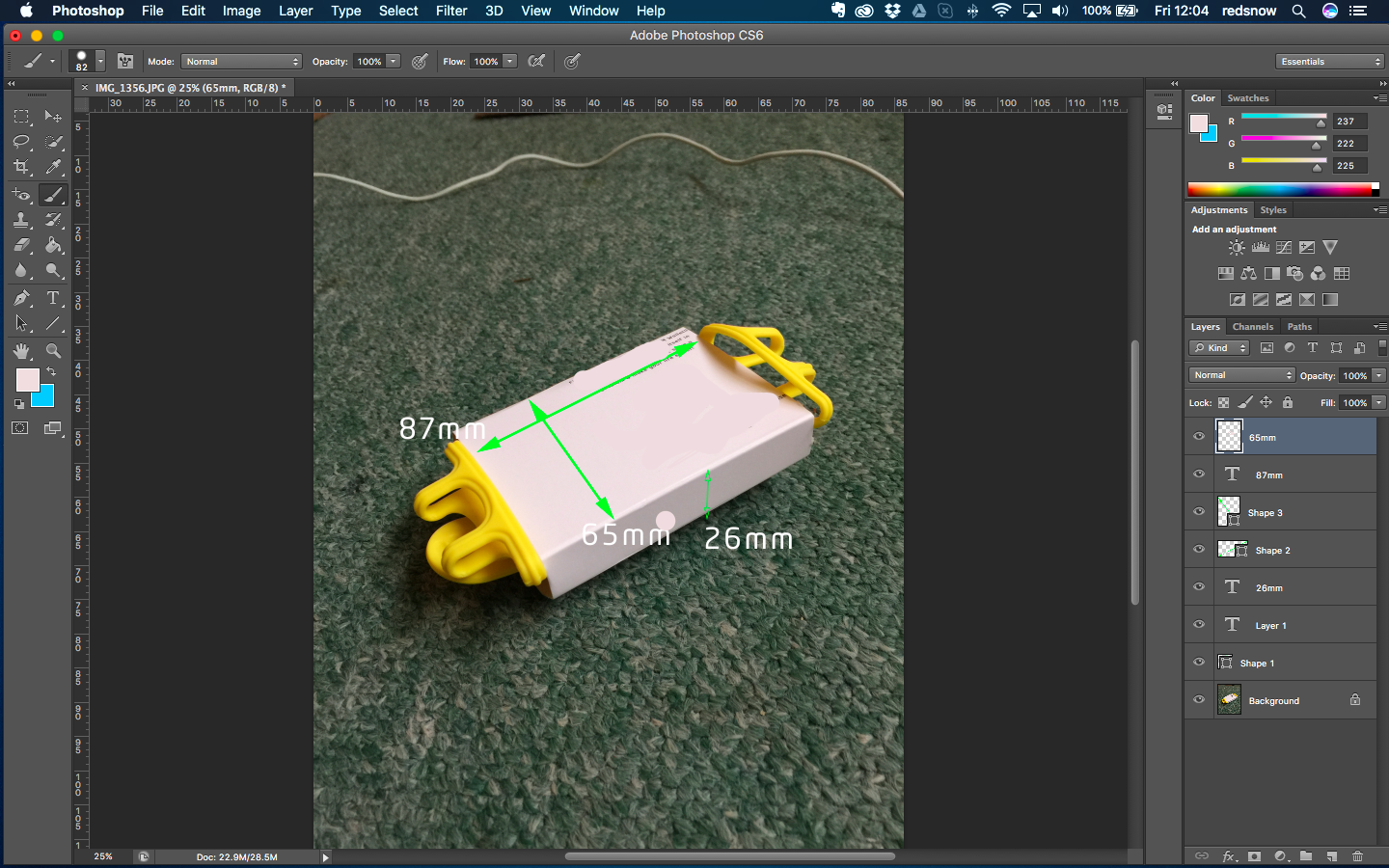 Dimensions: length 87mm, Width 65mm, height 26mm (see product picture)