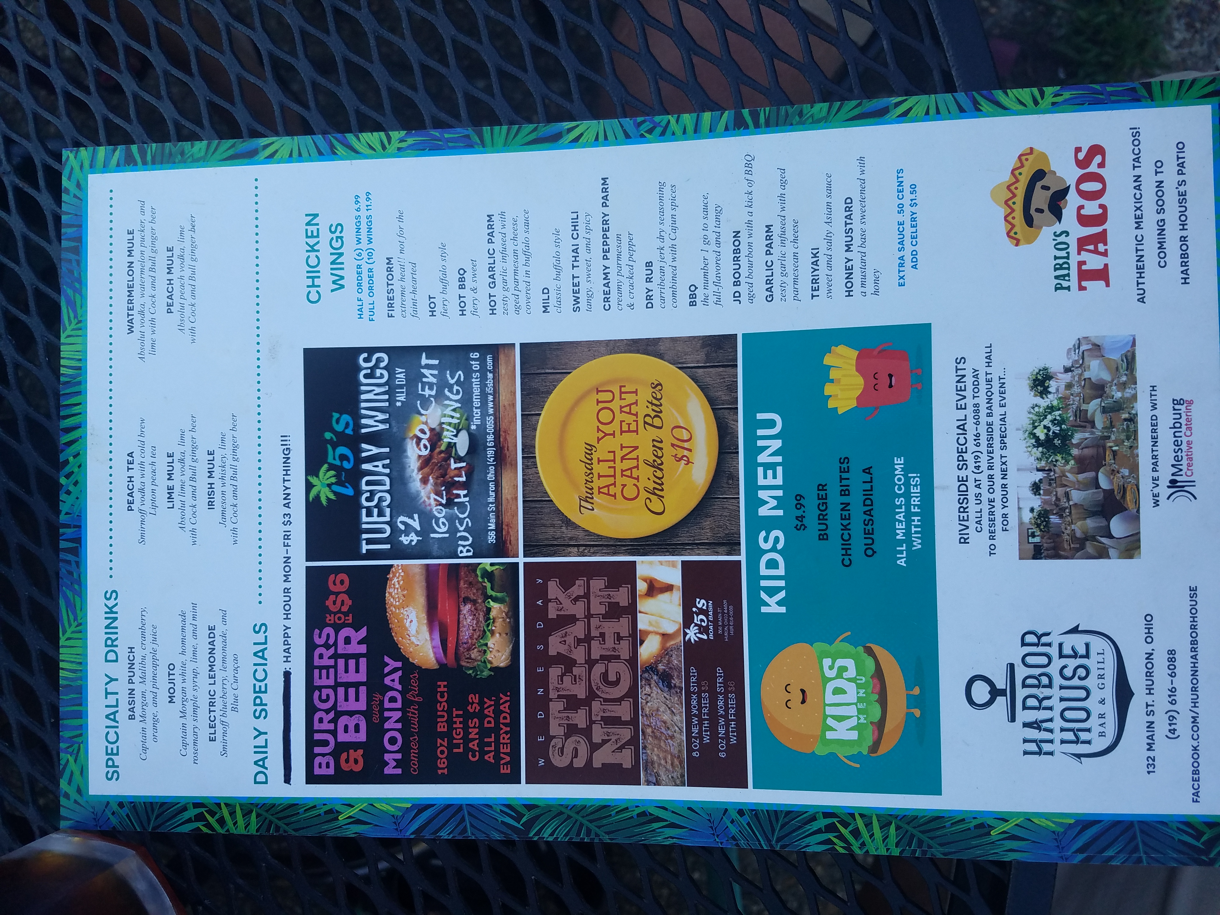 Varsity Club Sports Bar & Grill Dining Room Menu