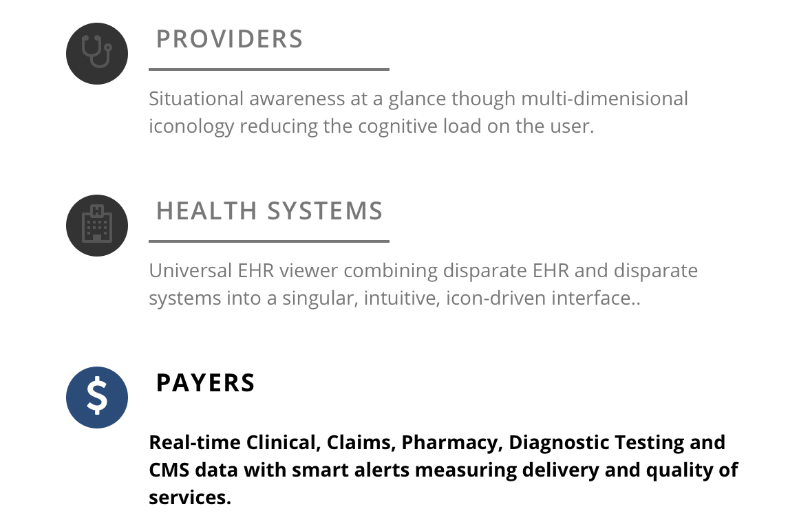 One suggestion for the designers would be to look at the icon as "the big picture". When people are in the hospital - there are MULTIPLE departments that deal with the patient. Doctors, nurses, insurance reps, lab reports, x-rays, etc. Our client builds an interface that takes all of the data and puts it in one place - so that you can see the complete picture of what is going on with the patient. All information comes TOGETHER in one place. In real time.
