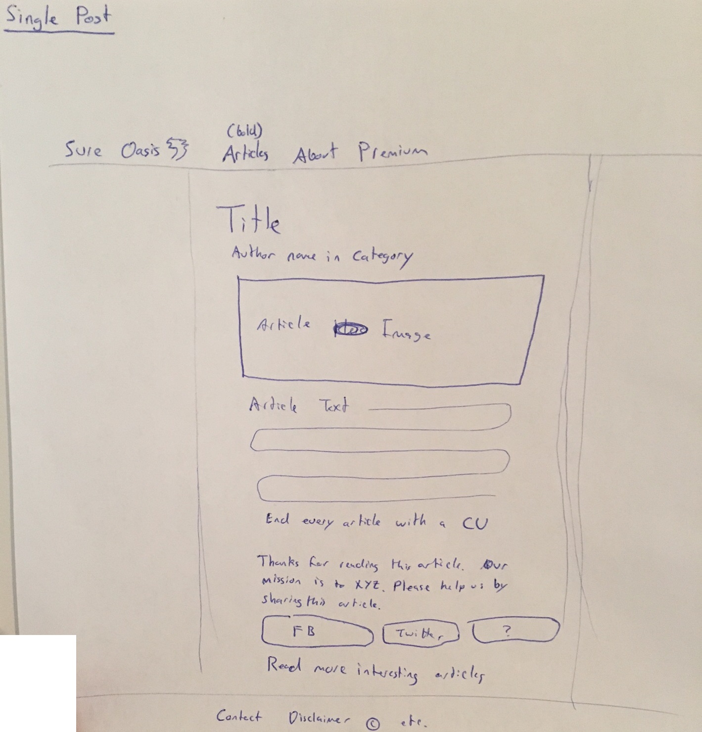 -For header, 'Articles', 'About', and 'Premium' can either be center or left aligned with the border of where actual articles can go