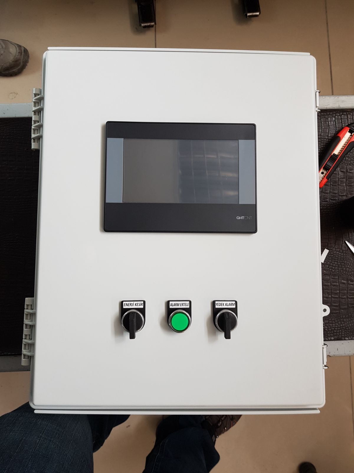 1- SM14 BOX Front Cover Design: This box is 37cm width and 47 cm height. It has a LED screen (19 cm x 14cm) in the middle and 3 circular buttons under the LED screen as seenin the attachment. We need a simple but good quality design including corporate colors (dark blue and red) for this box only for the front face of the box.