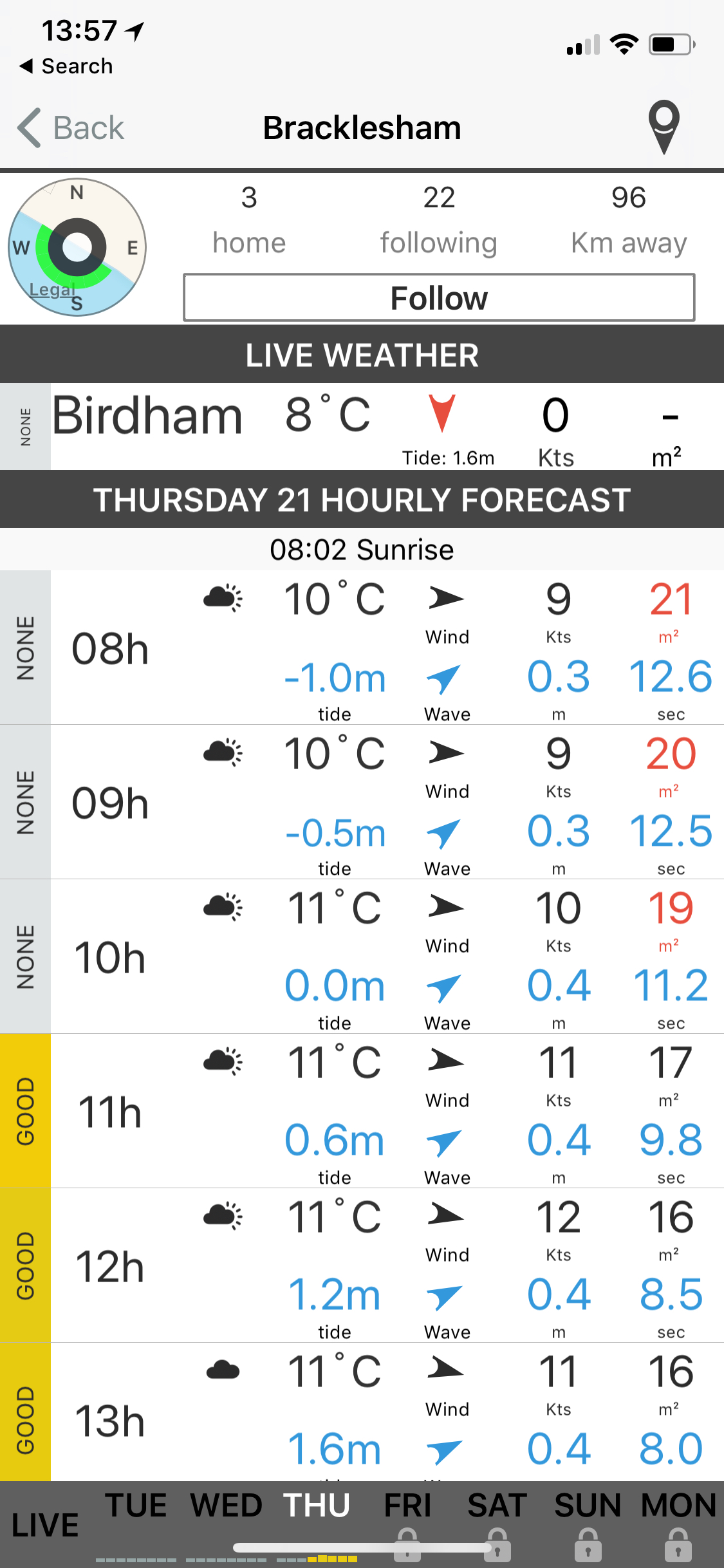 - Communicative color palettes for both wind strength, tide and waves