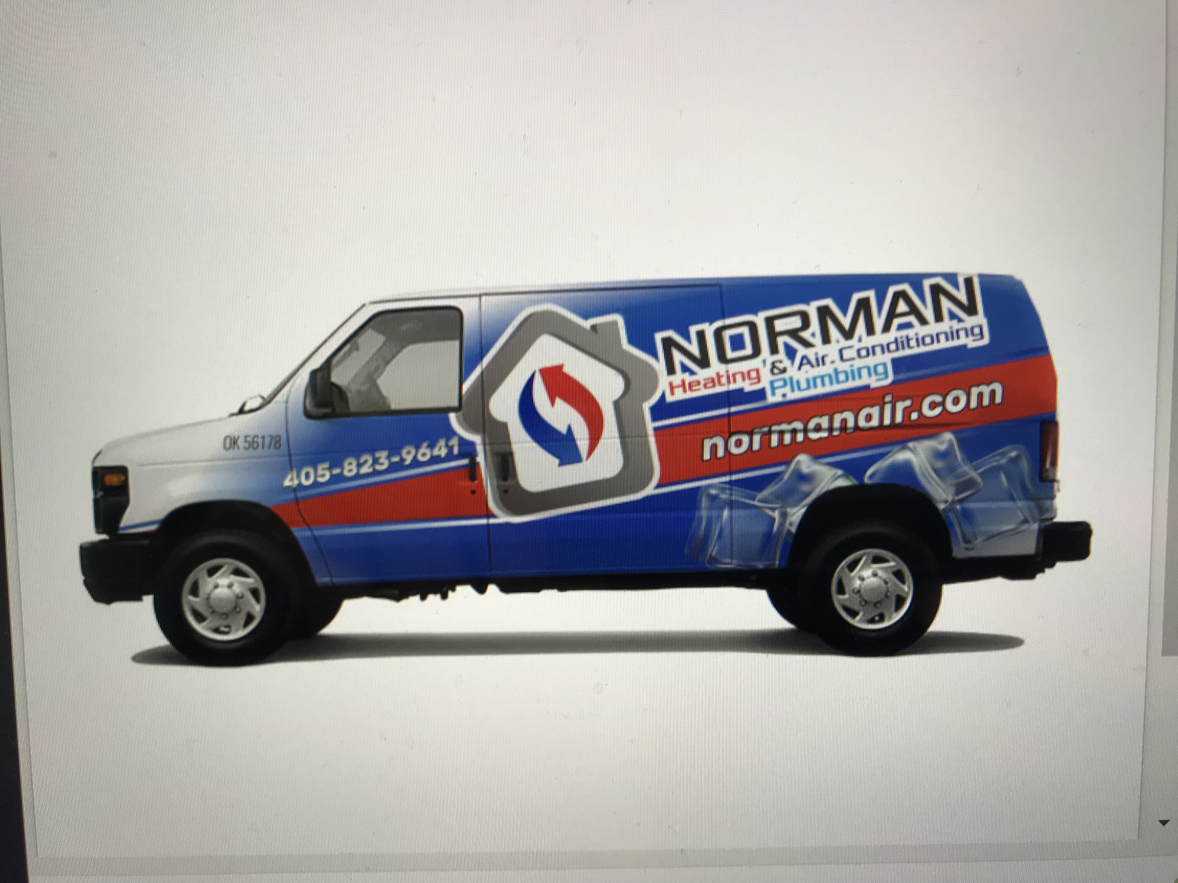 Looking for van wrap for 2012 Ford e250. Would like the layout to be like the red blue and white just like the pic I’m sending. Would like the logo to be like the blue van with the ice cubes. So basically I want the red white blue van layout with my logo and the Norman Heat air and plumbing should be in black and red and blue and light blue outlined in white. Have website on sides and phone number. On the botttom of the door i want a section in pink with ribbon and breast cancer awareness. On the other side a dog and cat and says adopt a pet. I have several vans and will want a different awareness on each door.