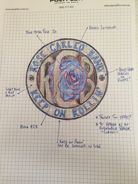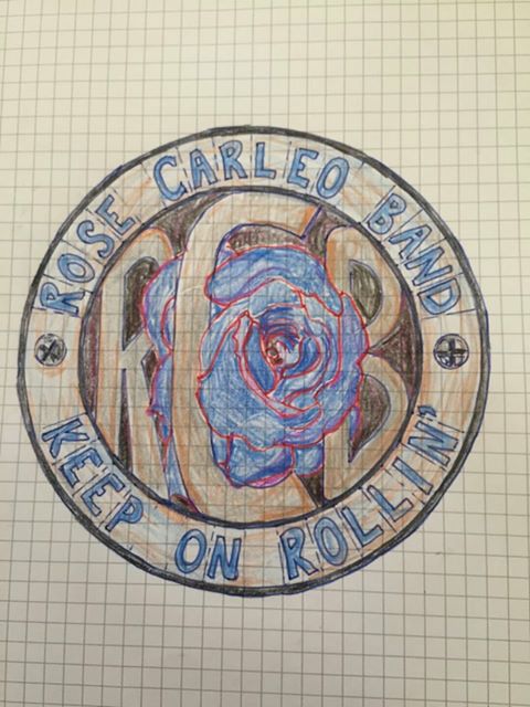 Please refer to uploaded files - ROSE CARLEO BAND in the upper section of circular frame, RCB and rose in the centre and KEEP ON ROLLIN' in the lower section of circular frame. We do NOT want the screws or rivets that appear in the attachments.