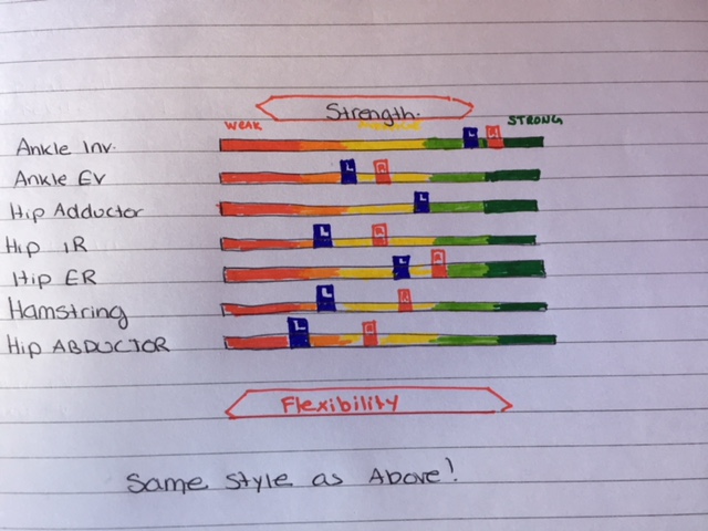 - Must have a graph format with traffic light system for the parameters with Pelvis/hip/knee/ankle.