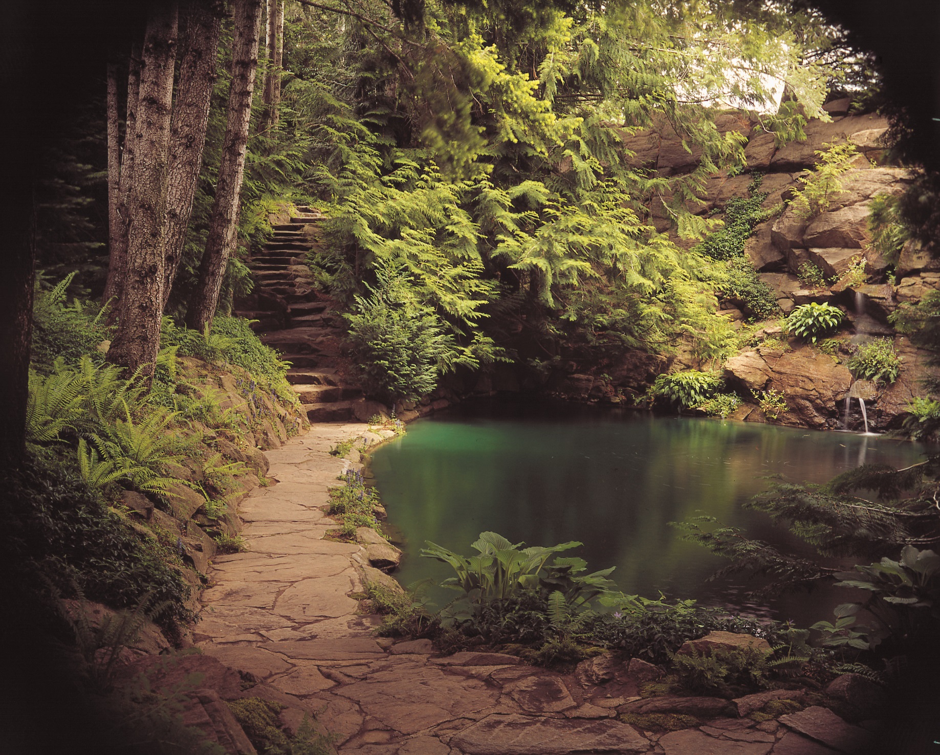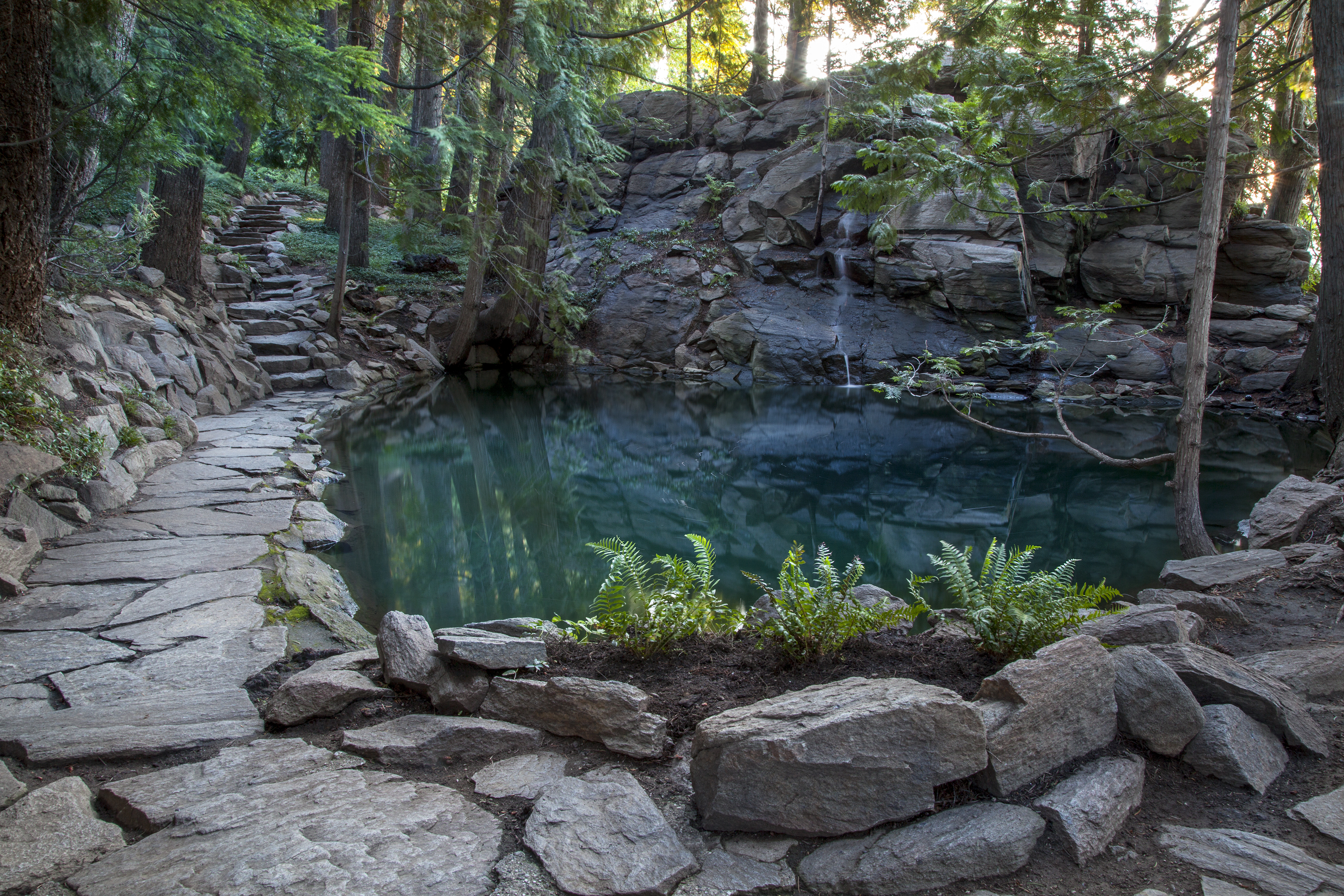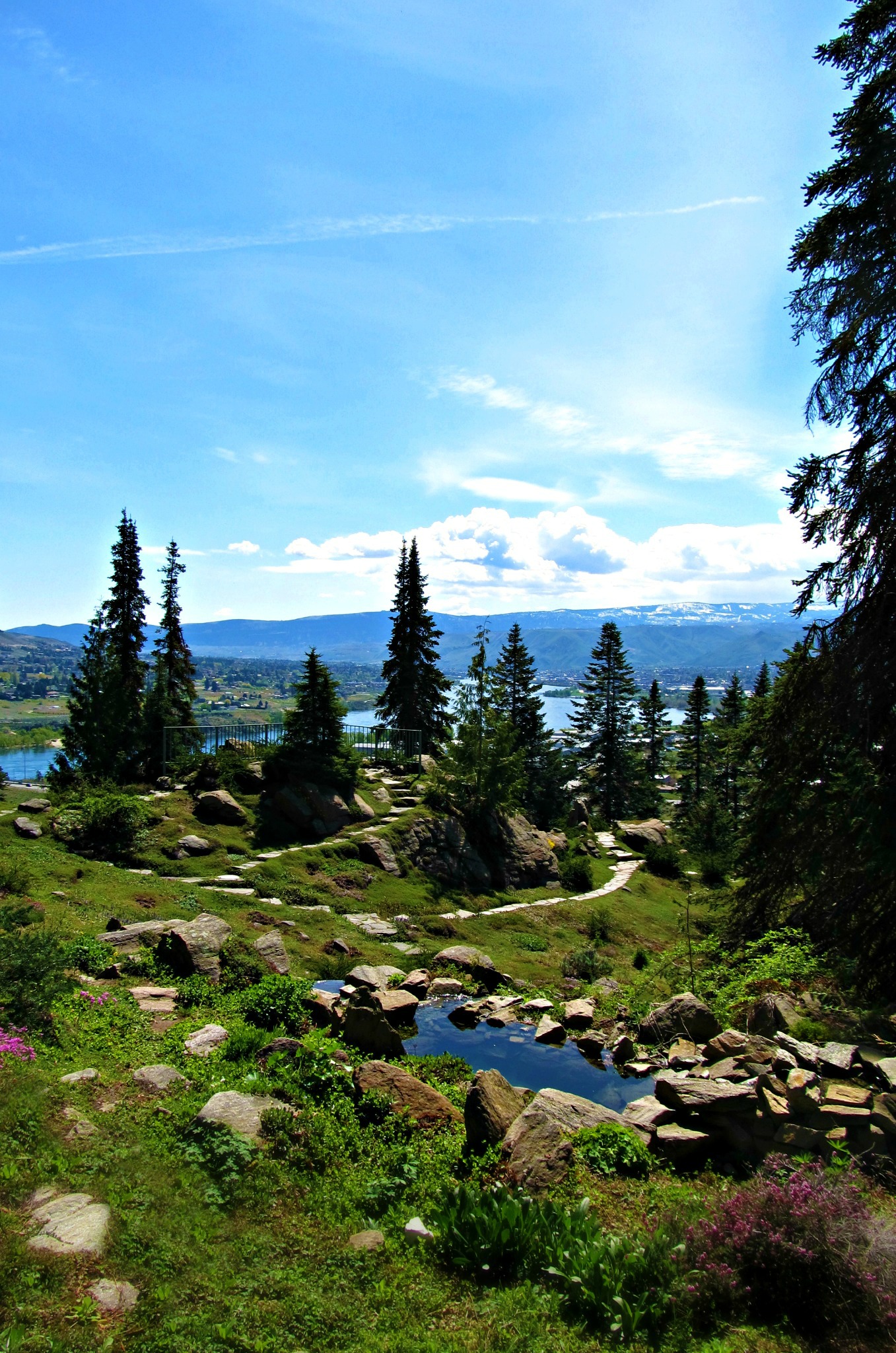 Ohme Gardens is a nine-acre wooded garden perched on the hilltop above Wenatchee, Wash. Our Gardens feature a nine-acre wooded oasis featuring panoramic views of the great Columbia River and the Wenatchee Valley. Meander under our towering pine and fir trees on our one-mile native stone walking paths along lush plantings, waterfalls and serenity pools. The Gardens were founded in 1929 and Ohme Gardens will be celebrating its 90th Anniversary in 2019.