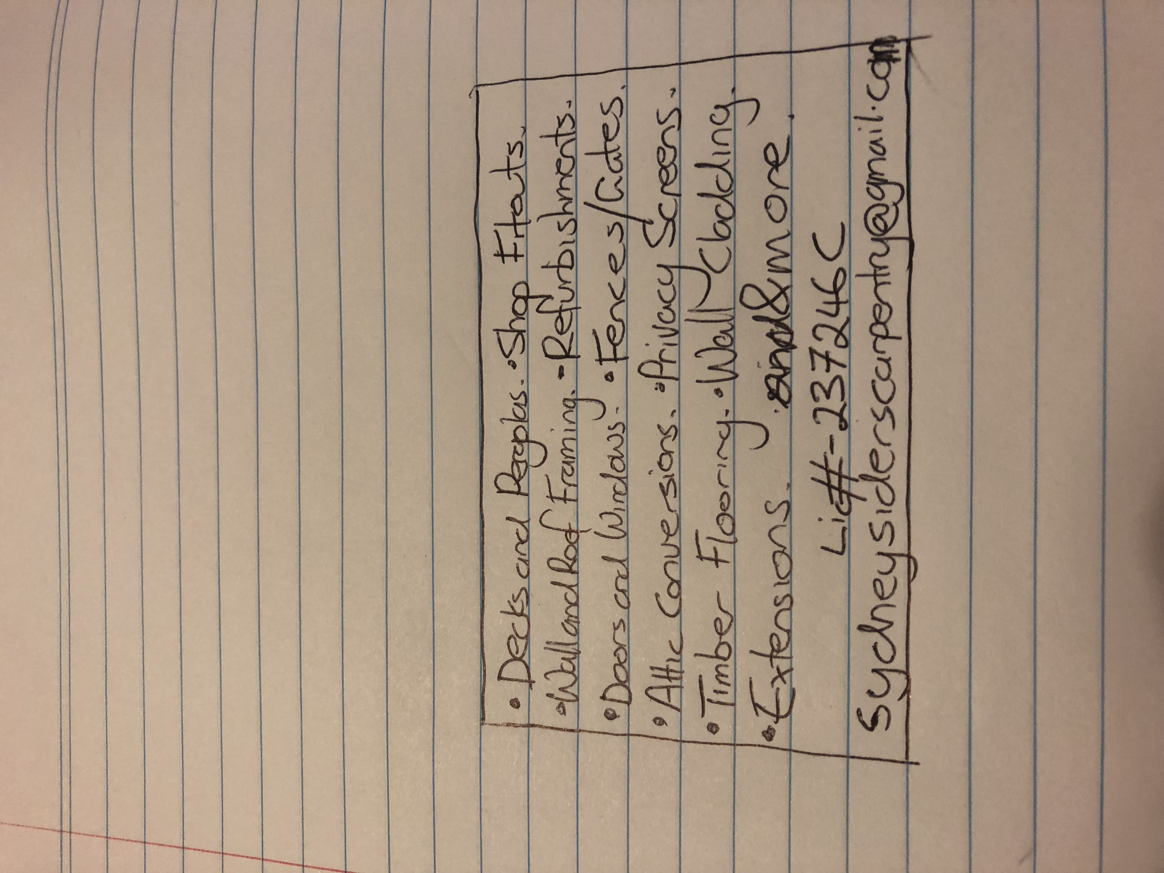 I need a business card design for my carpentry company SydneySiders Carpentry. Ive attached files with all information I require on both sides. Look forward to seeing your design.