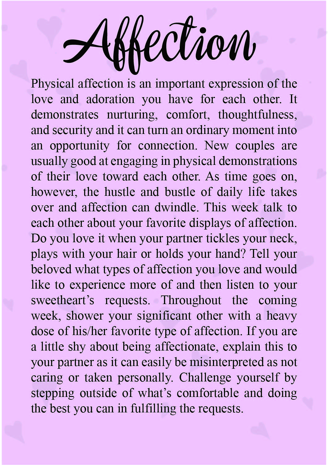 - Not overtly sexual since this has more of an emphasis on emotional intimacy than physical. We have found overtly sexual confuses people.