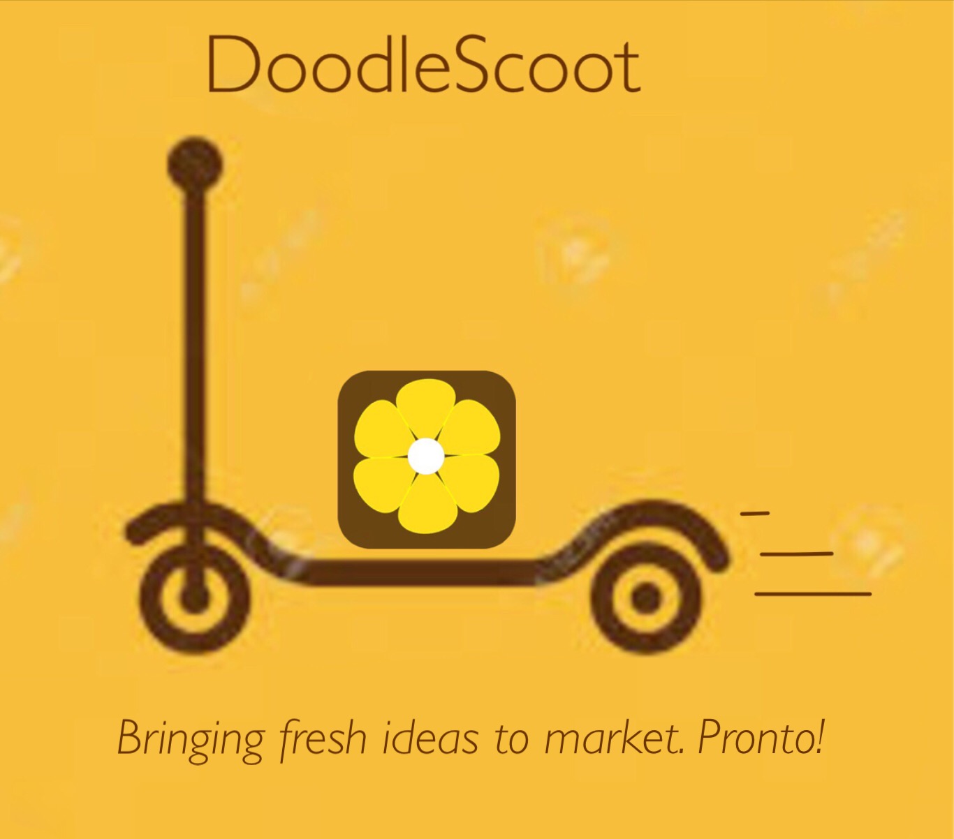 Looking for a design that expresses a zippy delivery of ideas, from an initial doodle, to whisking that idea off to market.Already have the basic idea: a little scooter, zooming or scooting briskly, carrying a package of a fresh idea (ideally shown as a doodle, that might look like a fresh flower or plant). The name (DoodleScoot) at the top, text beneath the graphic. Hoping for a graphic that is more symbolic, or stylized, than a picture of a scooter and package.