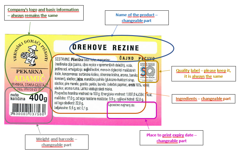 We would like a new general label design for several bakery products (biscuits), made by producer "Pekarna Adamič".
