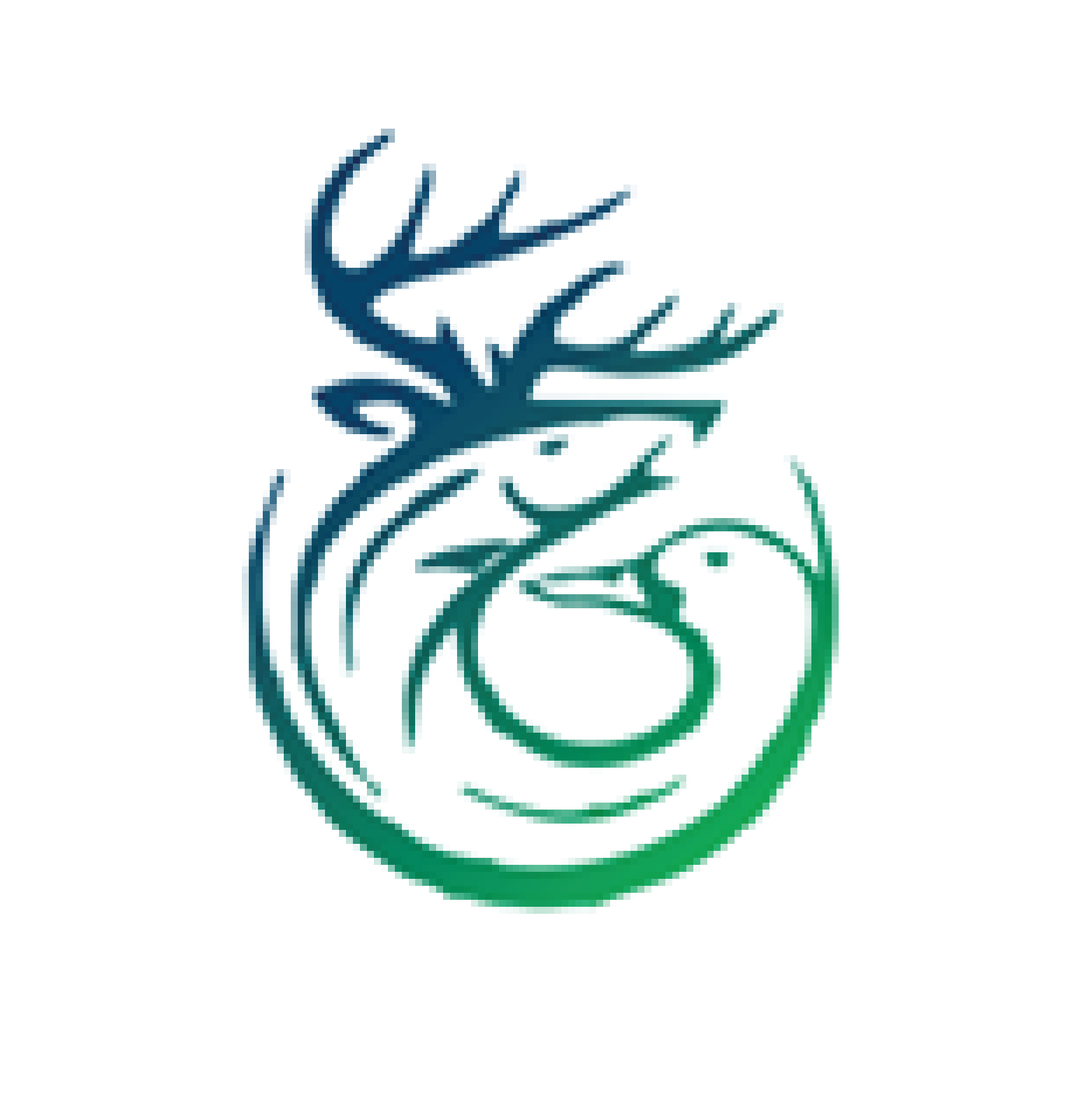 - Abstract and incorporate a deer with antlers, a duck, and a trout. Include the representation of mountains and trees subtly as well.