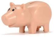 - a toy pig which looks like its made of steel or iron (grey or shiny coloured)